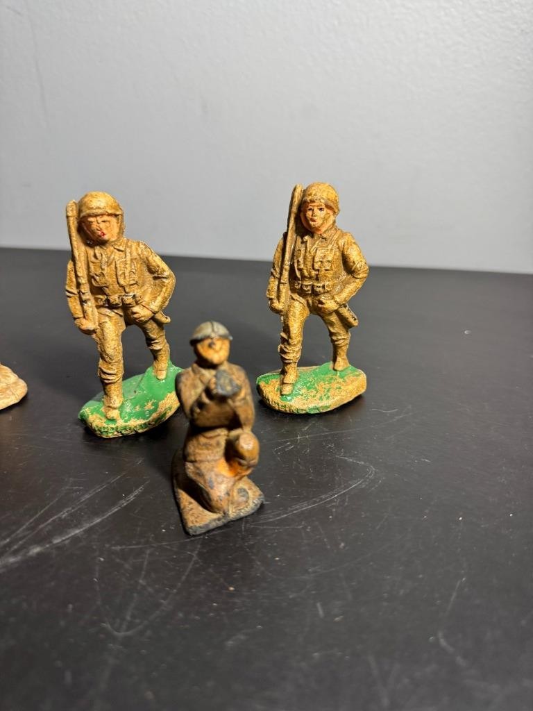 Rare Vtg 1940s WWII composition Toy Soldiers, Barclay, Made In the USA, Lot Of 4