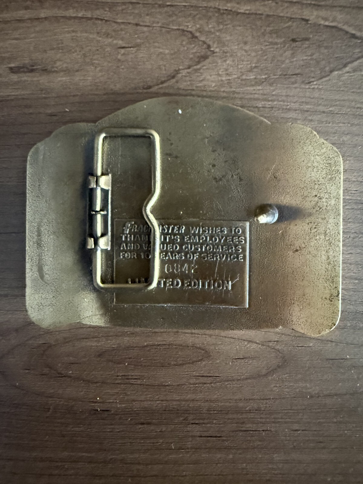 как выглядит VINTAGE BELT BUCKLE FRACMASTER 1976-1986 10TH ANNIVERSARY фото