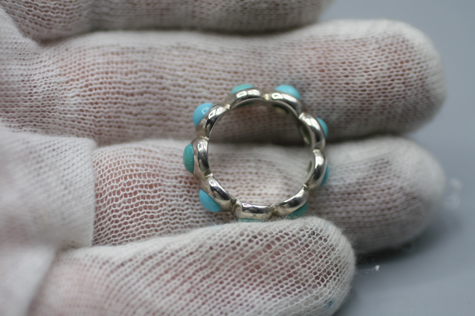 как выглядит Sterling Silver SI INDIA 925 Turquoise Eternity Band Ring фото