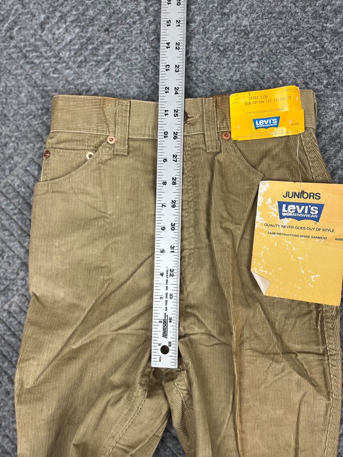 Vintage 70 s Levis Corduroy Pants Womens 23x33 Beige Talon Boot NOS