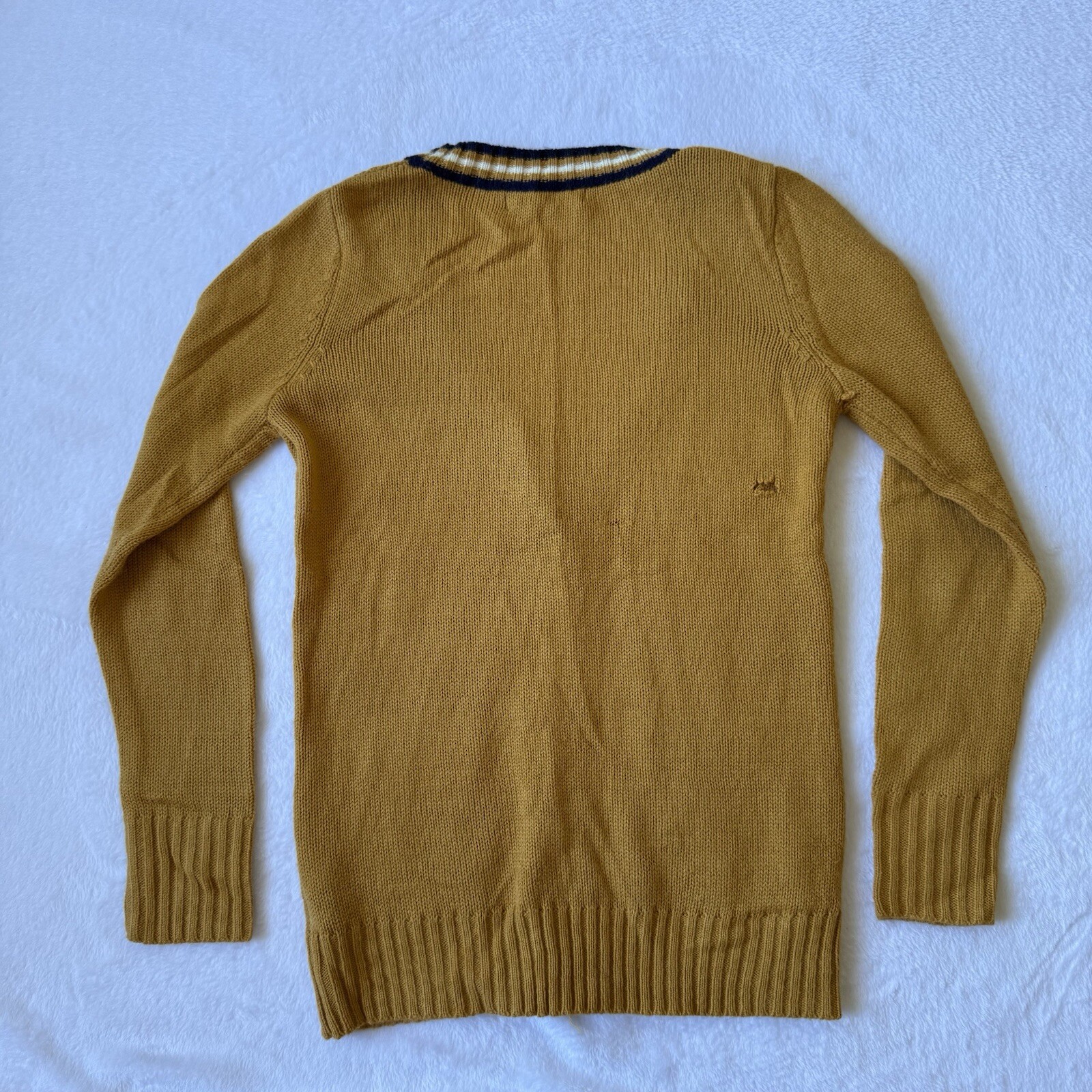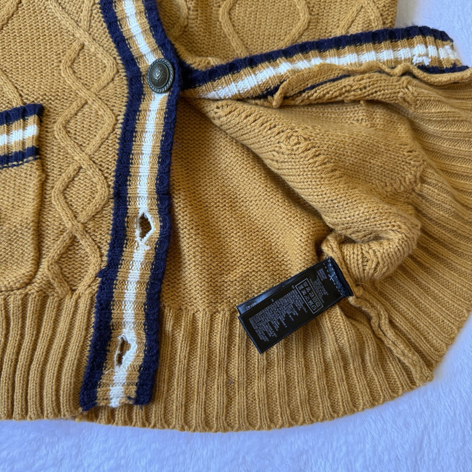 как выглядит Forever 21 Cardigan Gold/Blue Button Up V Neck Pockets Cable Knit фото