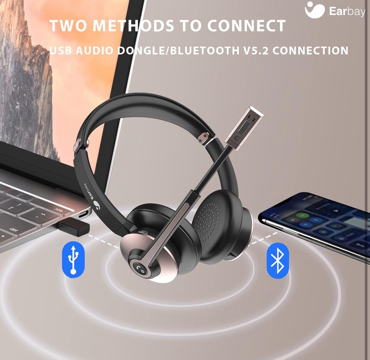 как выглядит Earbay Bluetooth Headset with Microphone, Wireless Headset with Noise Cancelling фото