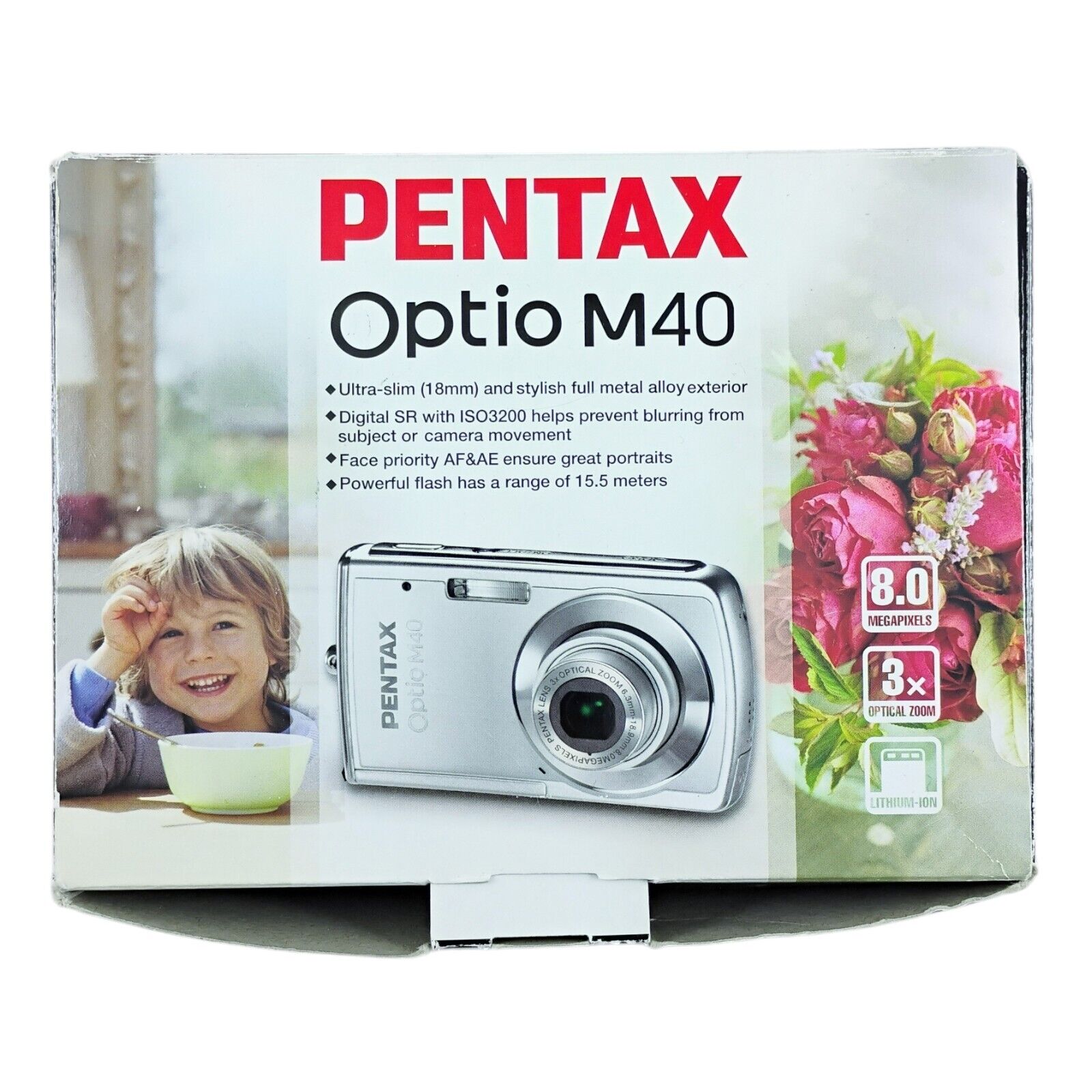 как выглядит Pentax Optio M40 8.0MP Compact Digital Camera Silver w/ Box Battery Charger фото