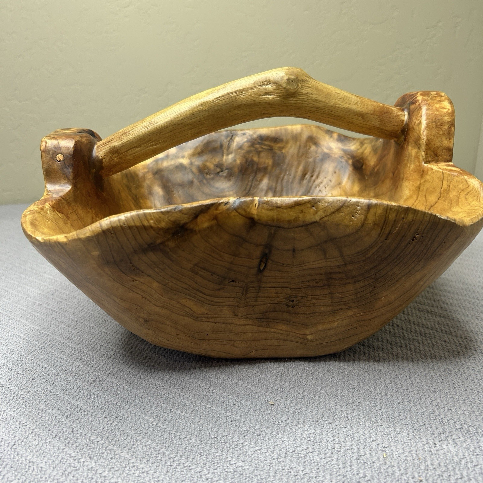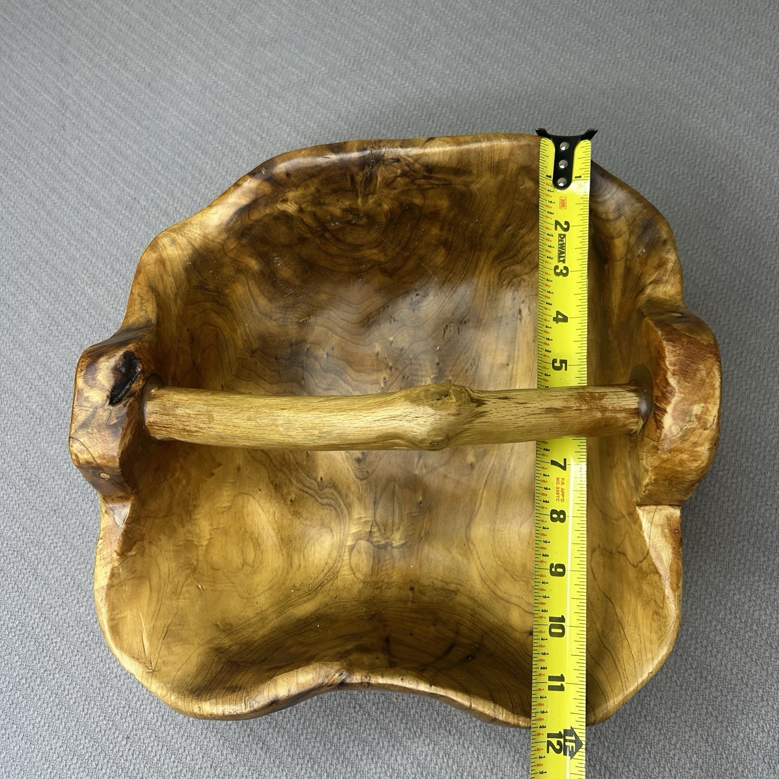 как выглядит Hand Carved Burl Root Wood Basket Bowl W/ Handle 12x12x5 фото
