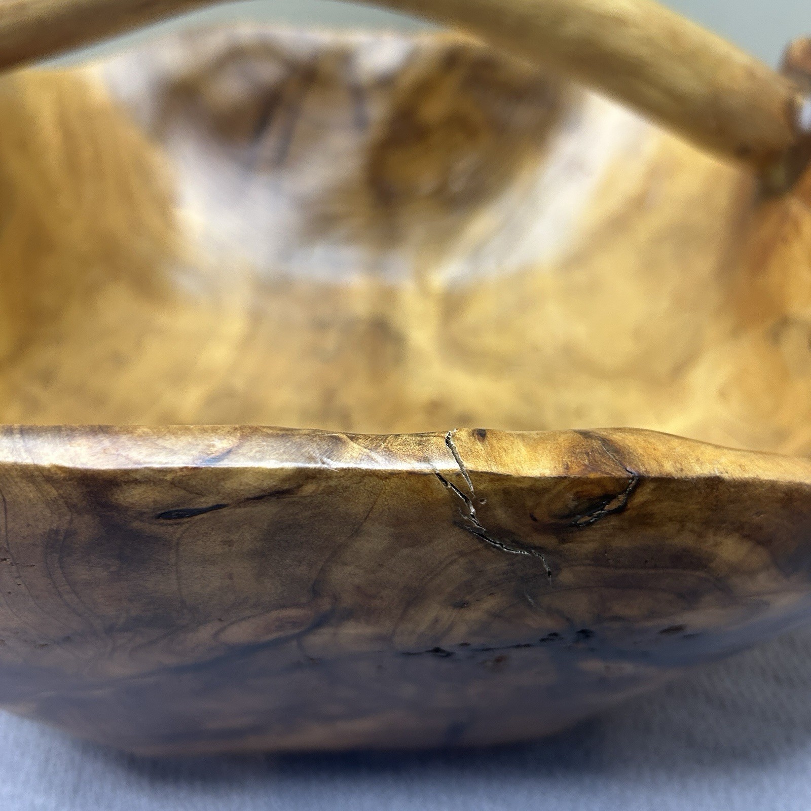 Hand Carved Burl Root Wood Basket Bowl W/ Handle 12x12x5