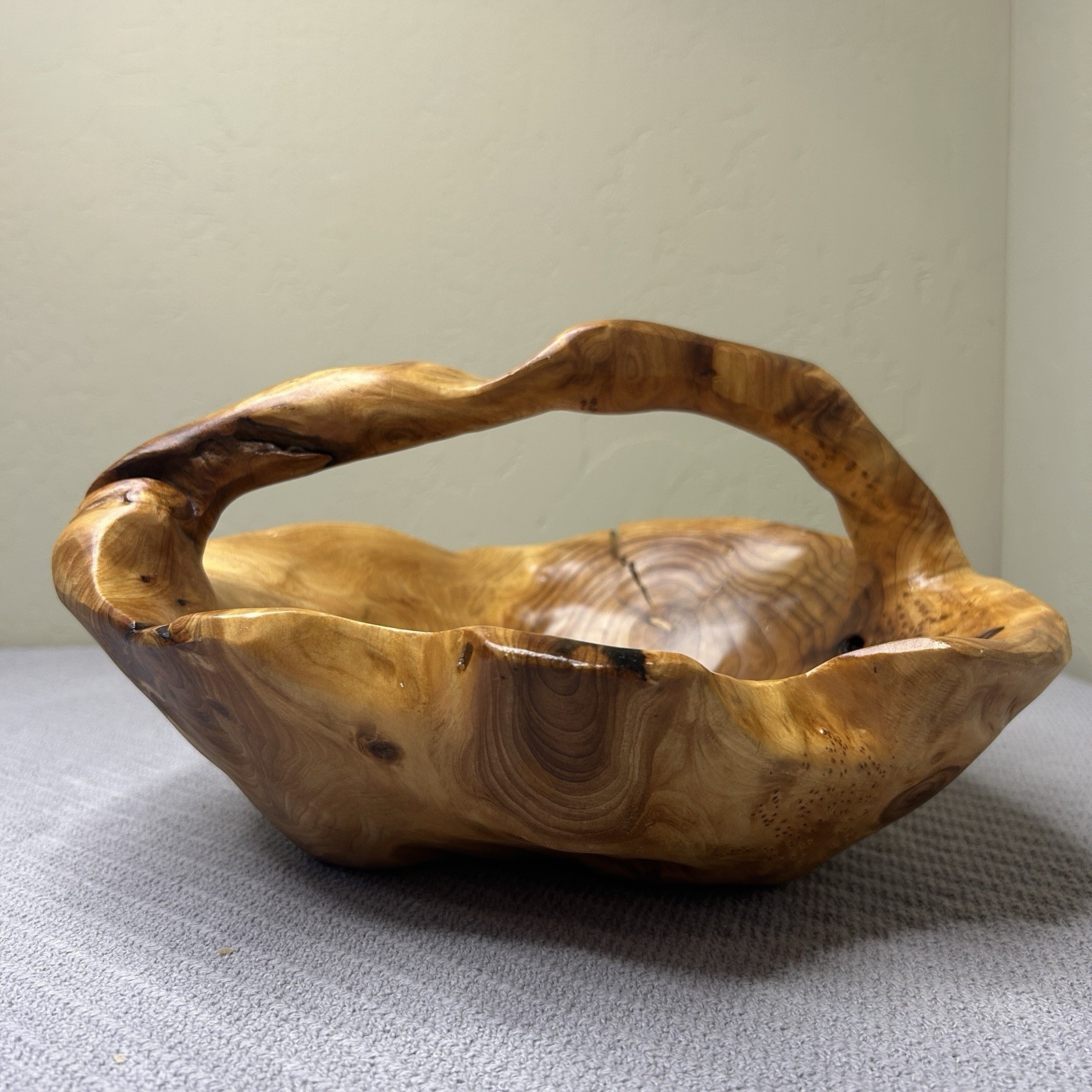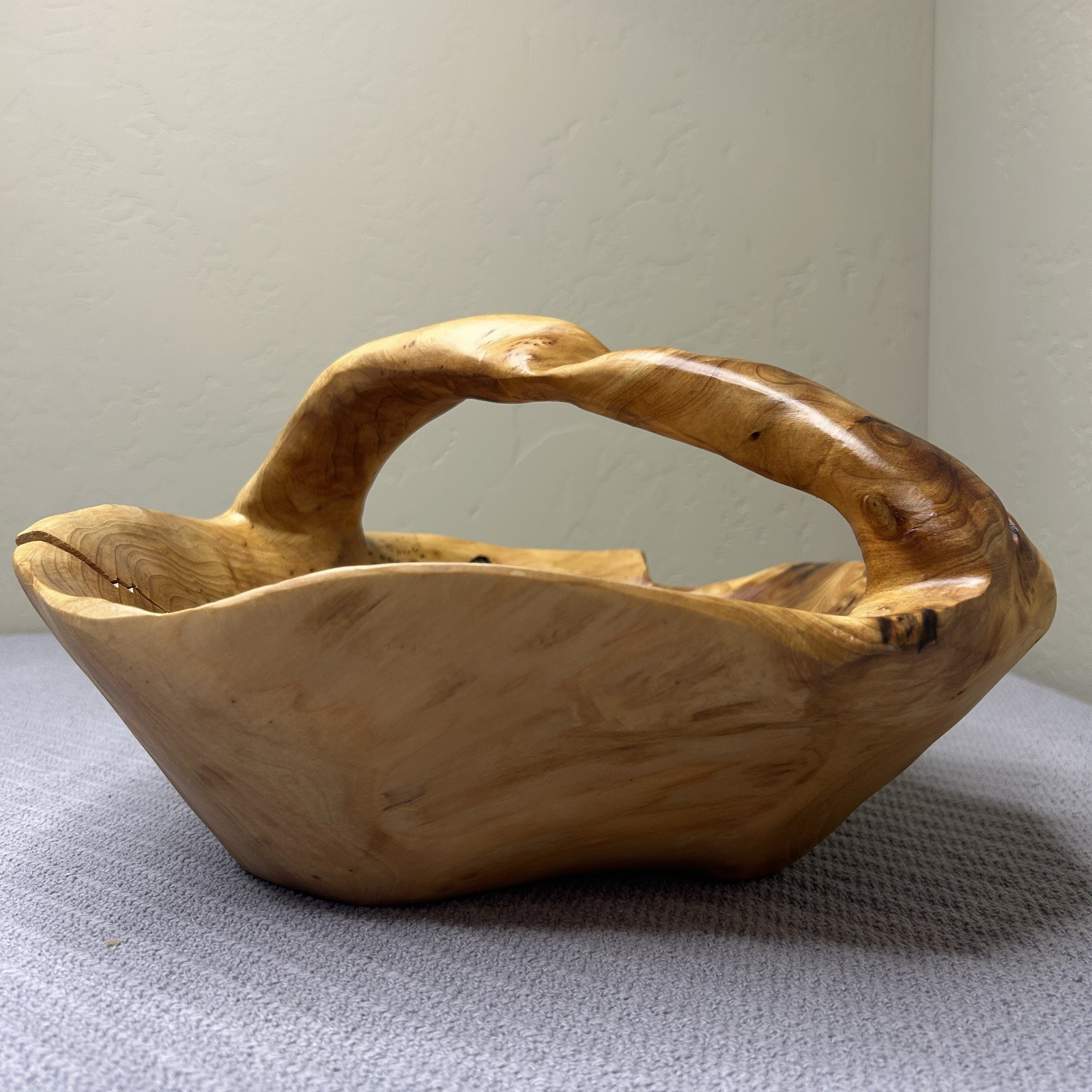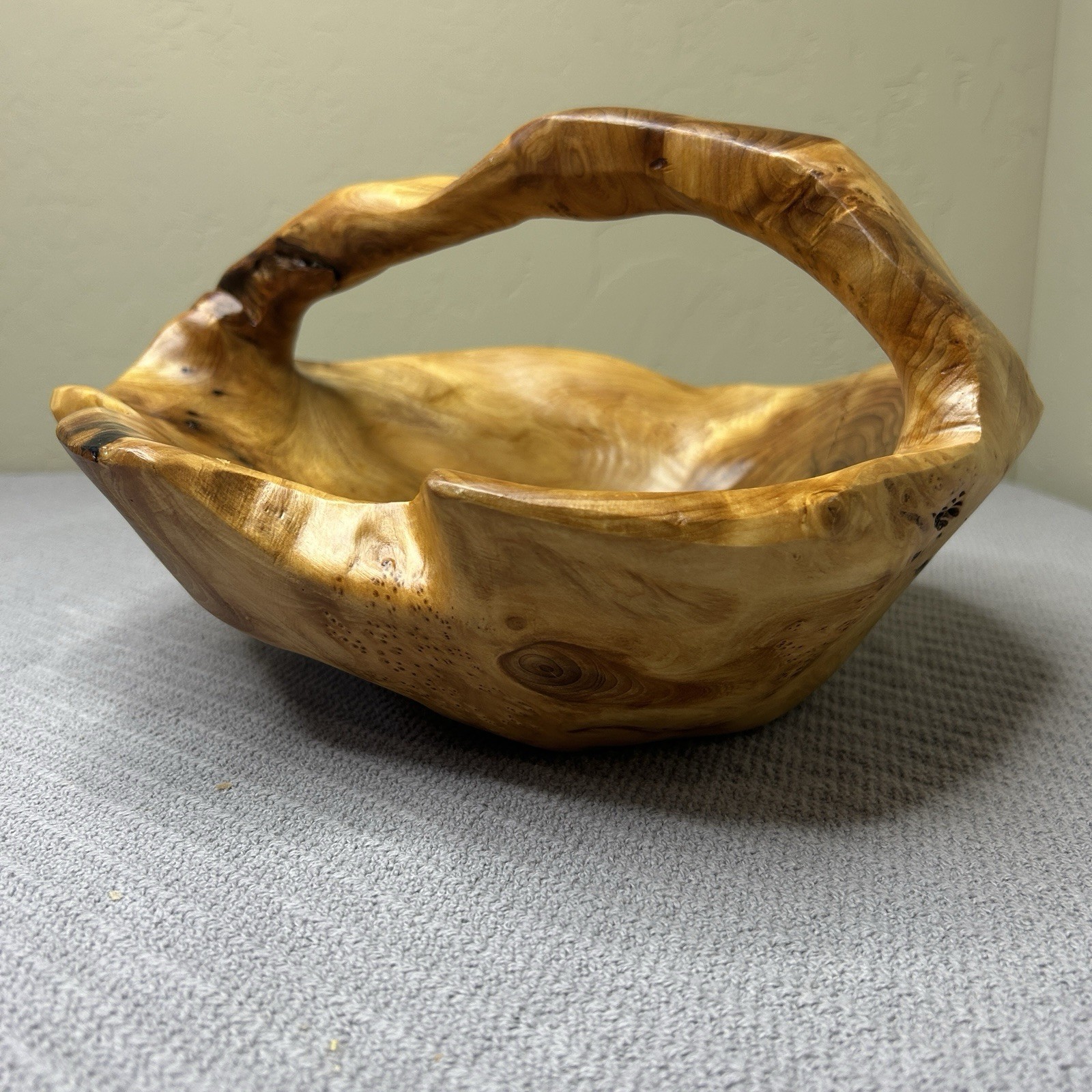 как выглядит Hand Carved Wood Burl Root Decorative Wooden Basket Bowl With Handle фото