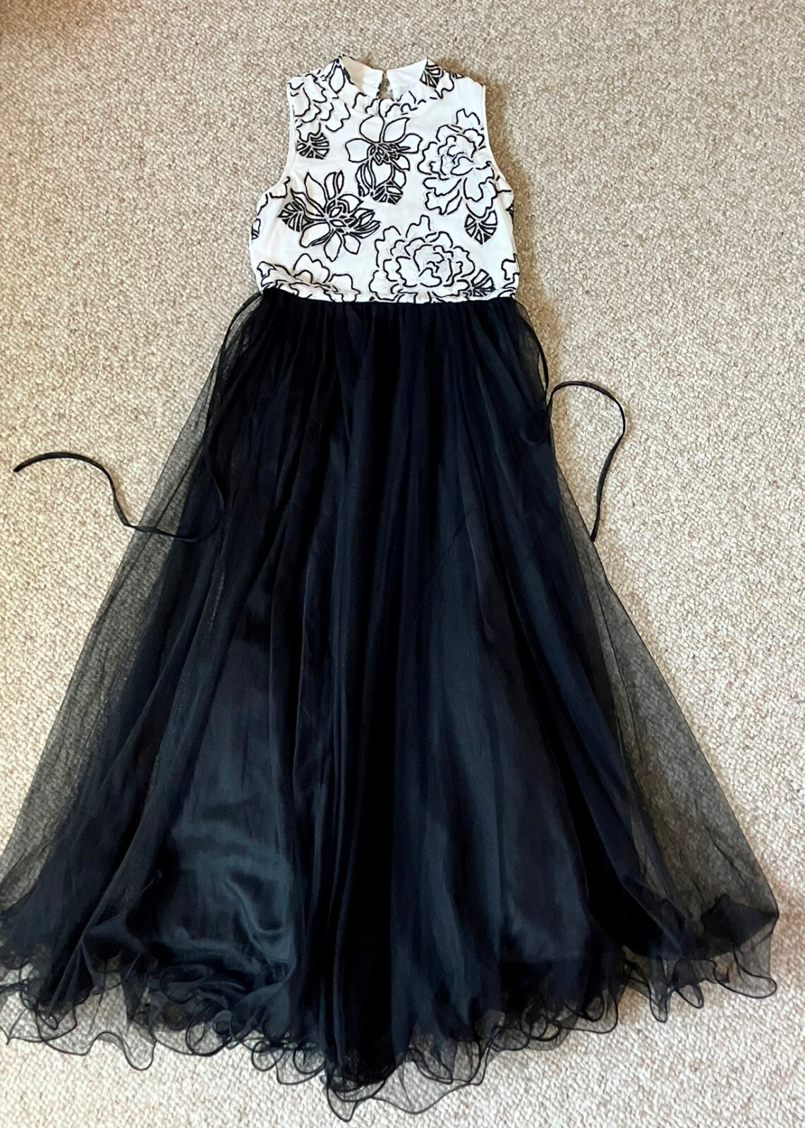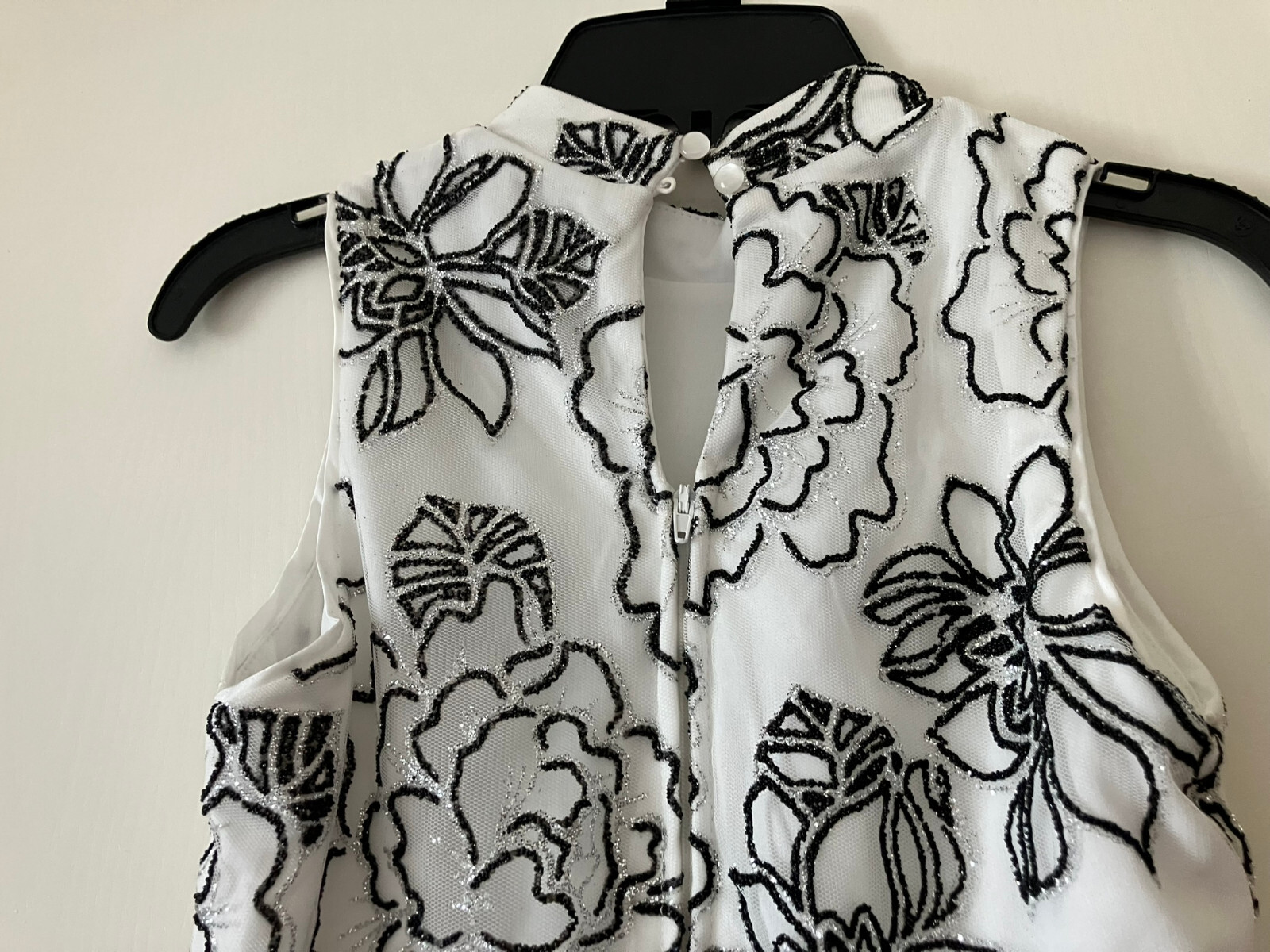 Xtraordinary Black White Sparkly Silver Floral Girls Formal Flared Dress 12