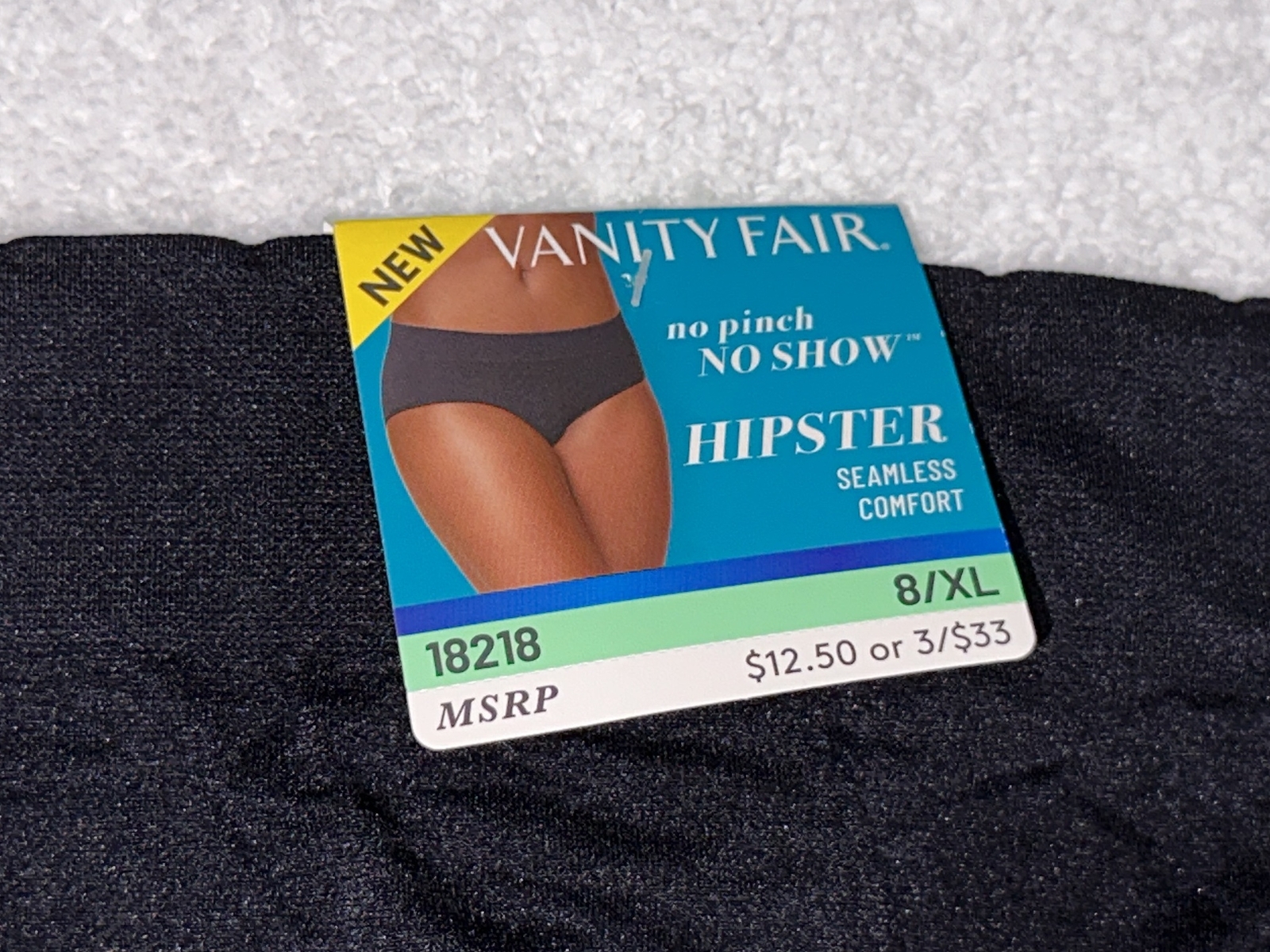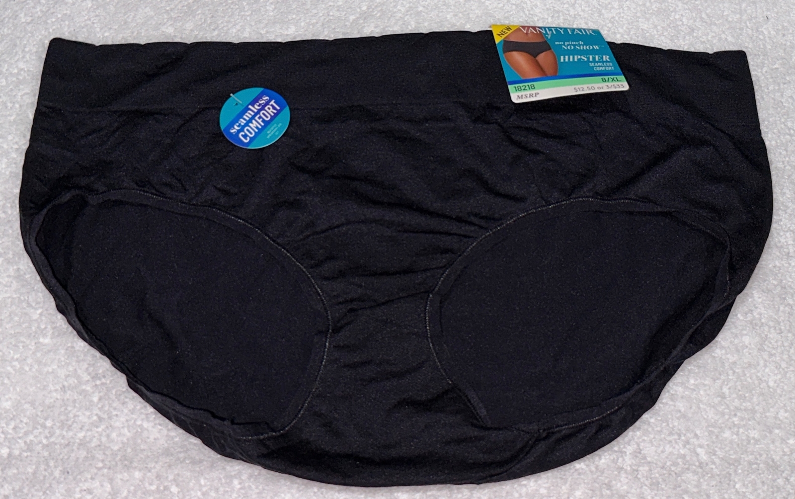 VANITY FAIR No Pinch No Show Seamless Black Hipster Panty Womens Sz XL 8