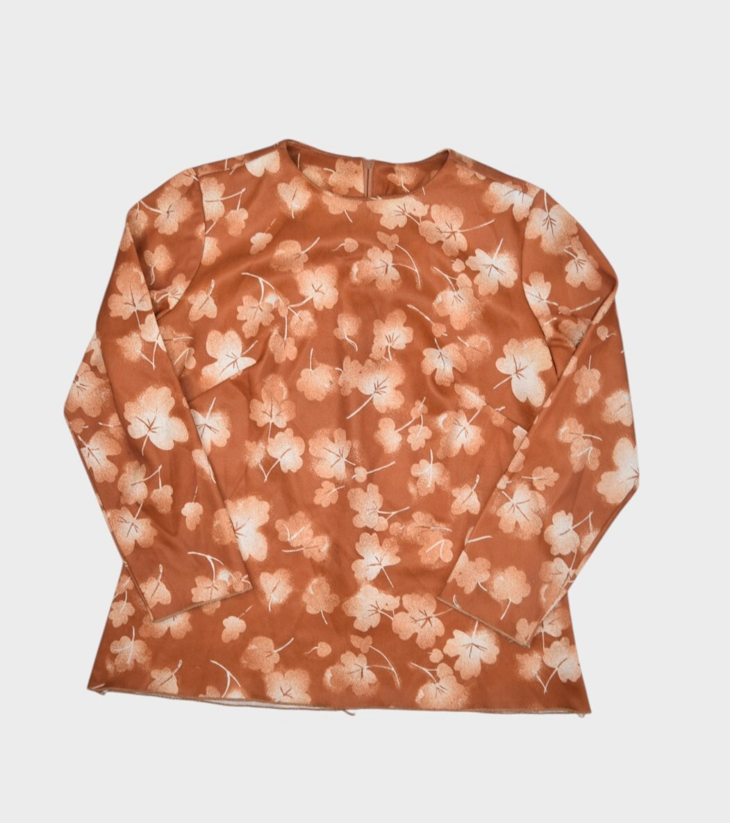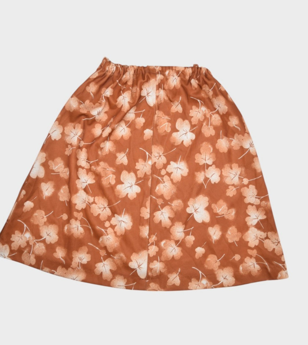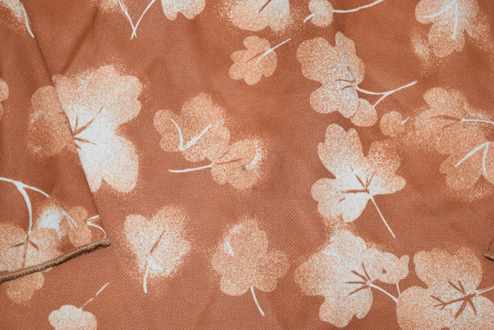 Vintage 70s 2 Piece Set Womens M Brown Leaf Skirt Top Polyester Leisure Autumn