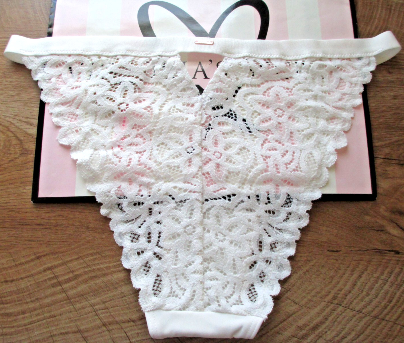 как выглядит VICTORIAS SECRET PINK String Bikini Panty VS Coconut White S M L XL Lace Back фото