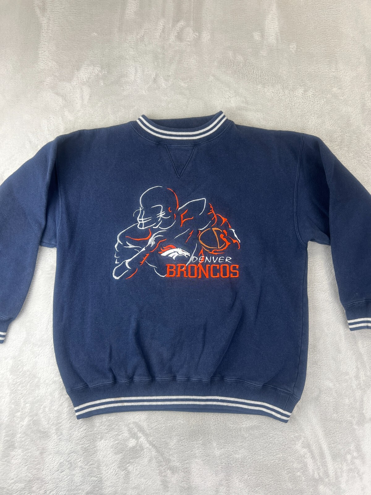 • Vintage 90s Denver Broncos Cadre Embroidered Sweatshirt Youth Size L Navy