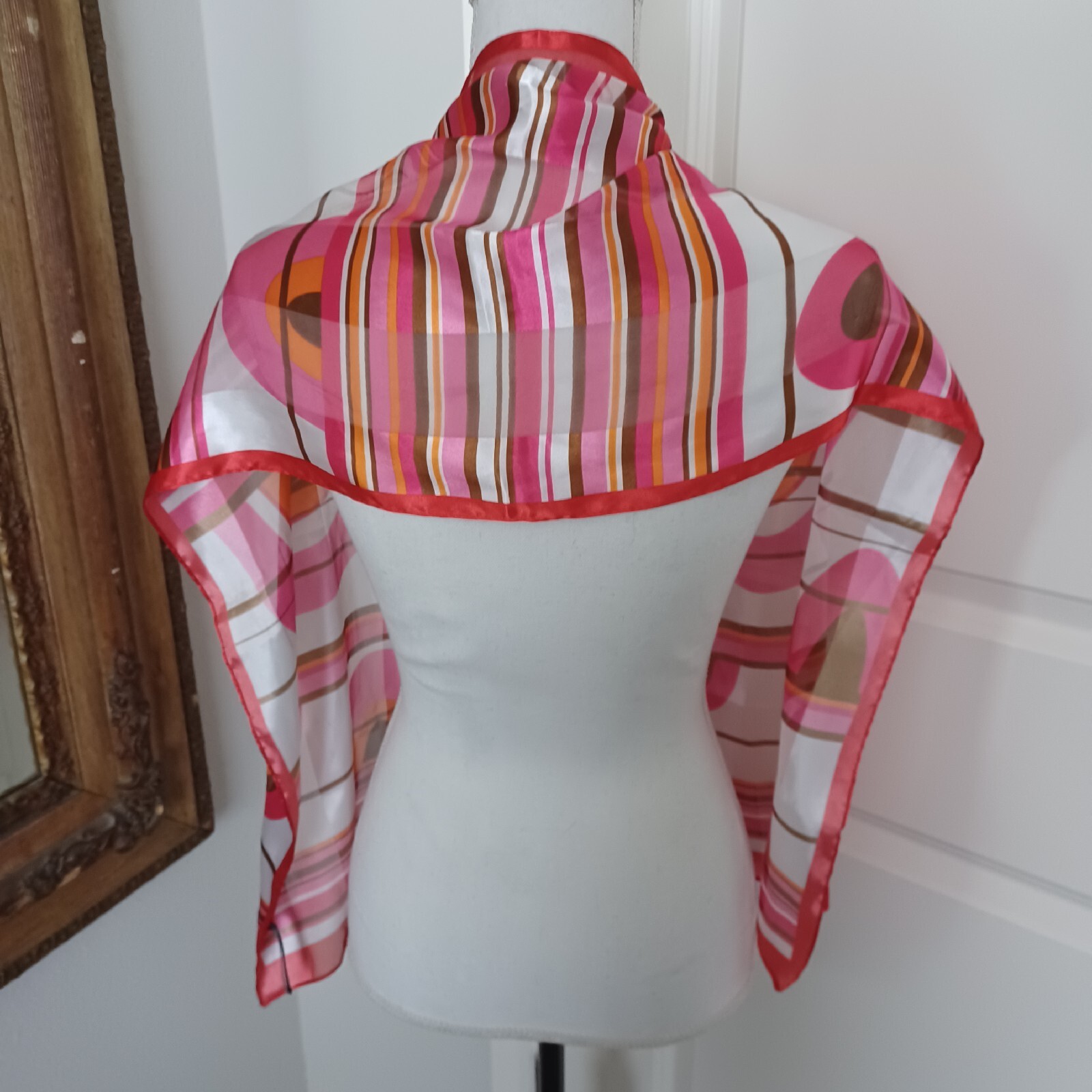 как выглядит Vintage 70s 80s Colorful Pink Red Orange White Geometric Long Scarf 13" x 58" фото