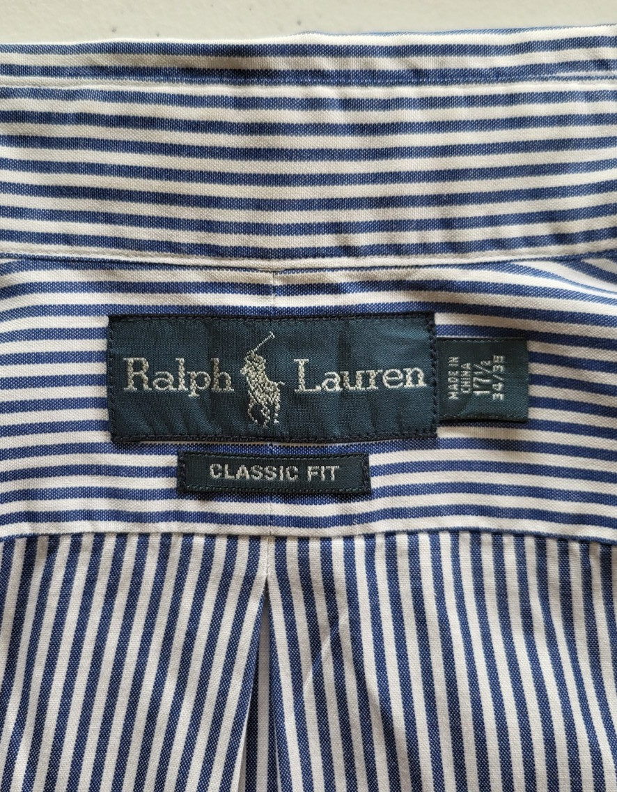 Ralph Lauren Classic Fit blue/white striped button-down shirt, 17 1/2 34/35