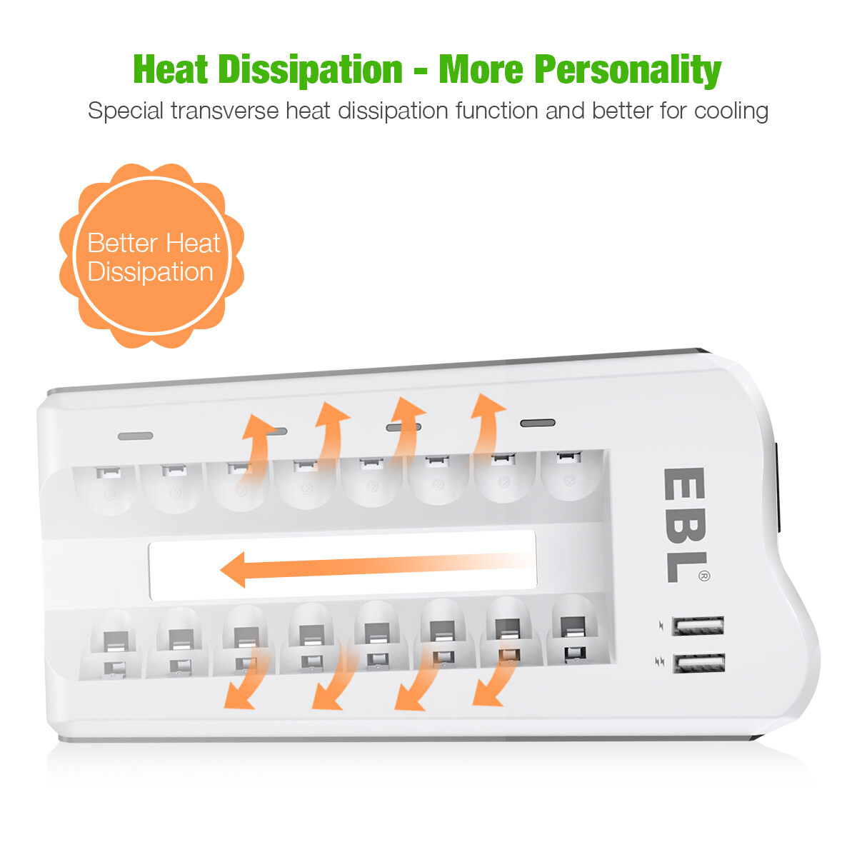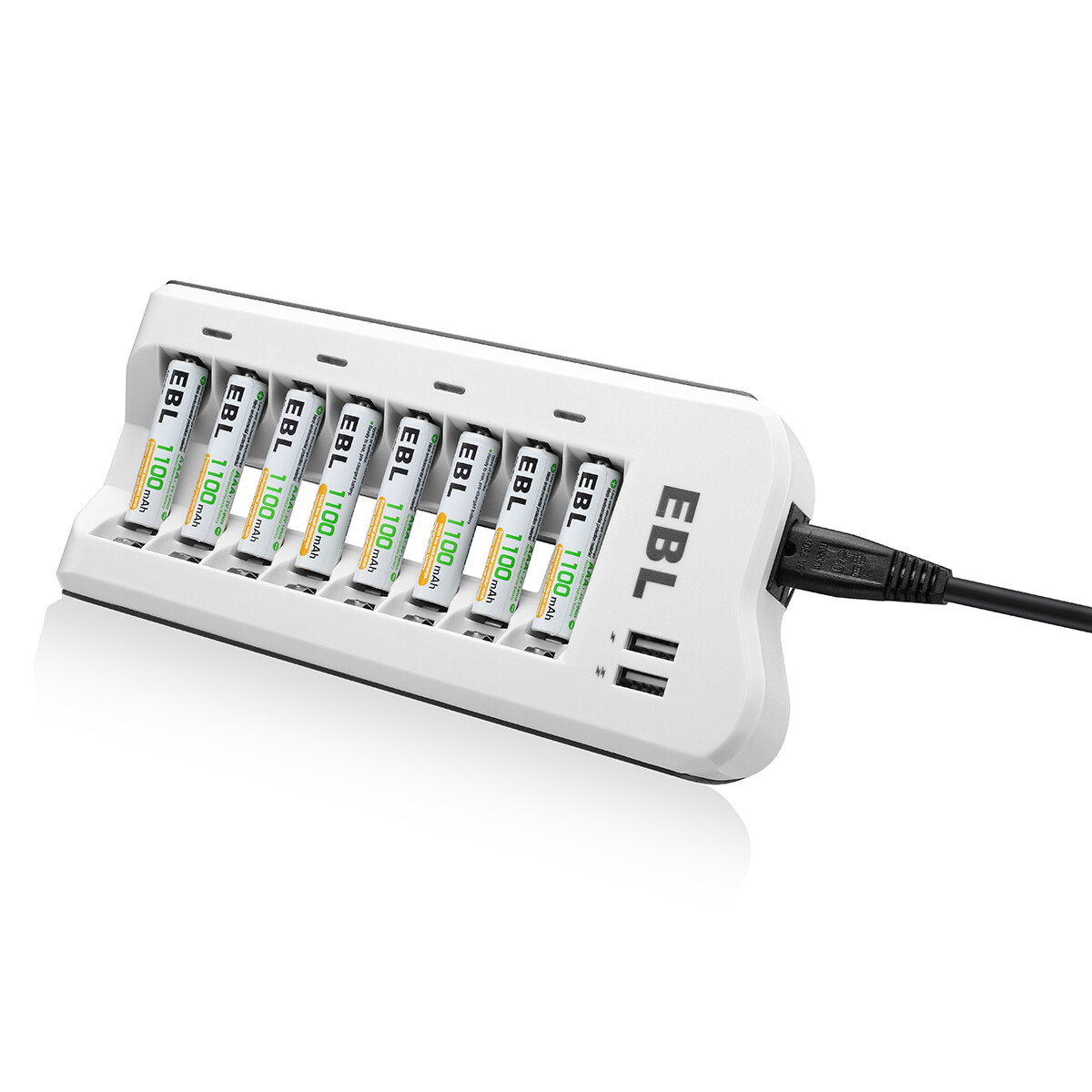Lot EBL AA AAA 1100/ 2800mAh Ni-MH Rechargeable Batteries / 8-Slot Smart Charger