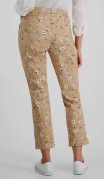 как выглядит Tommy Hilfiger Womens Brown Ditsy Hampton Chino Rolled-Cuff Pants Size 16 фото