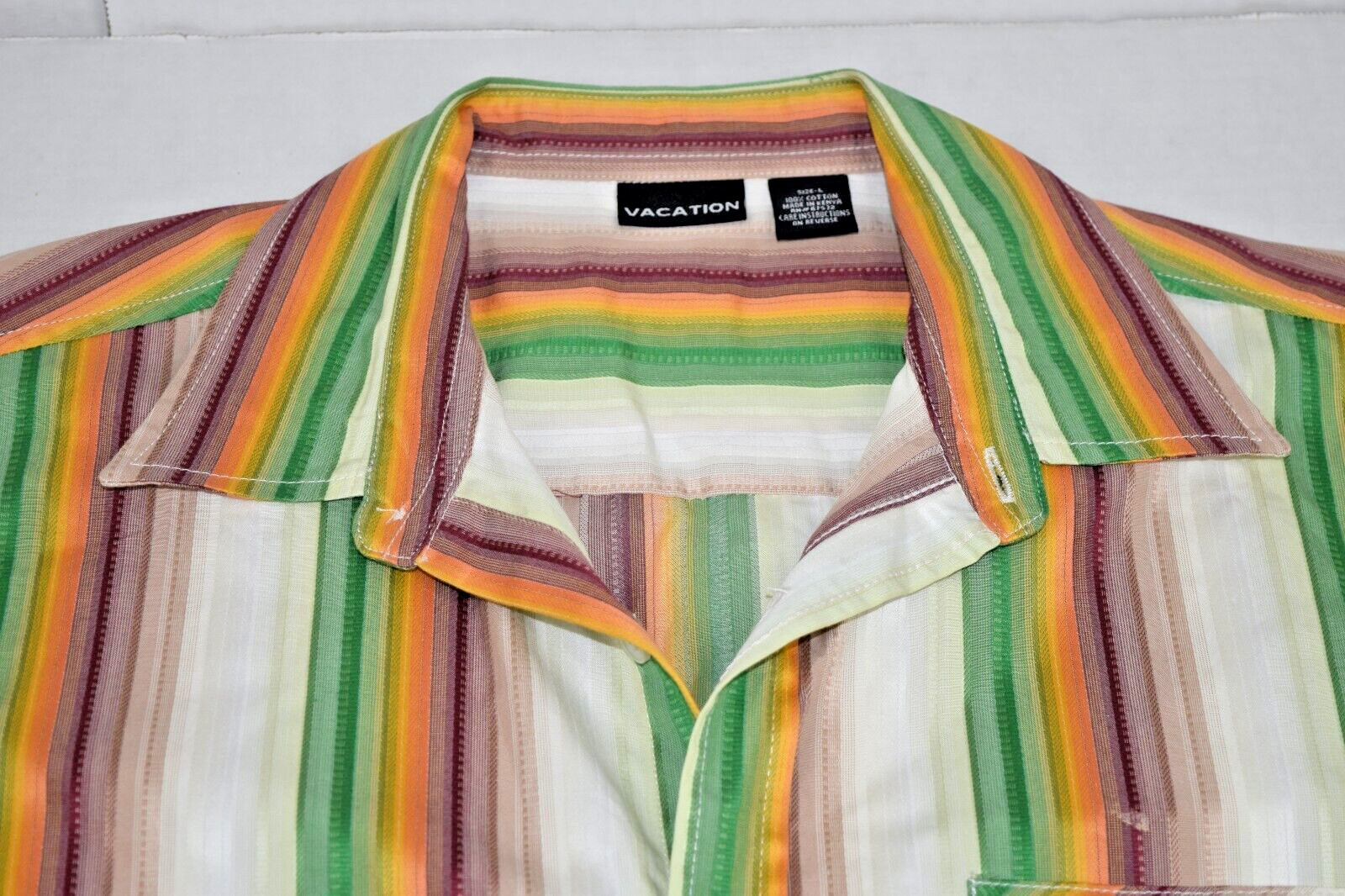 Vintage Leisure Shirt Vacation Size L 90s Green Yellow Red Textured Made Kenya