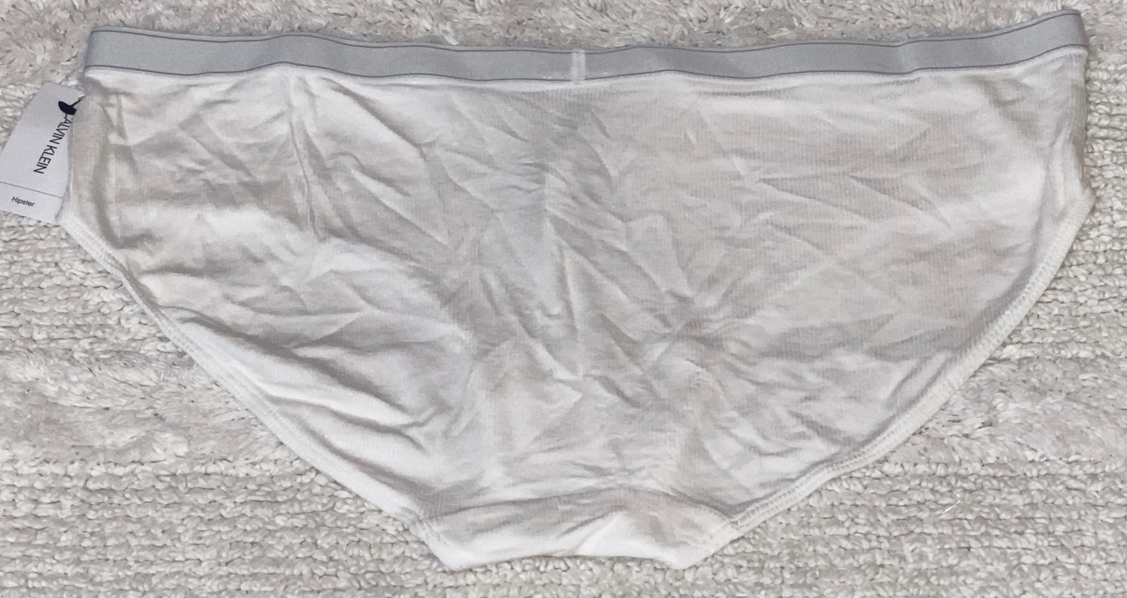 как выглядит CALVIN KLEIN Pure Ribbed Soft Modal White Grey Hipster Panty Womens S 5 L 7 XL 8 фото