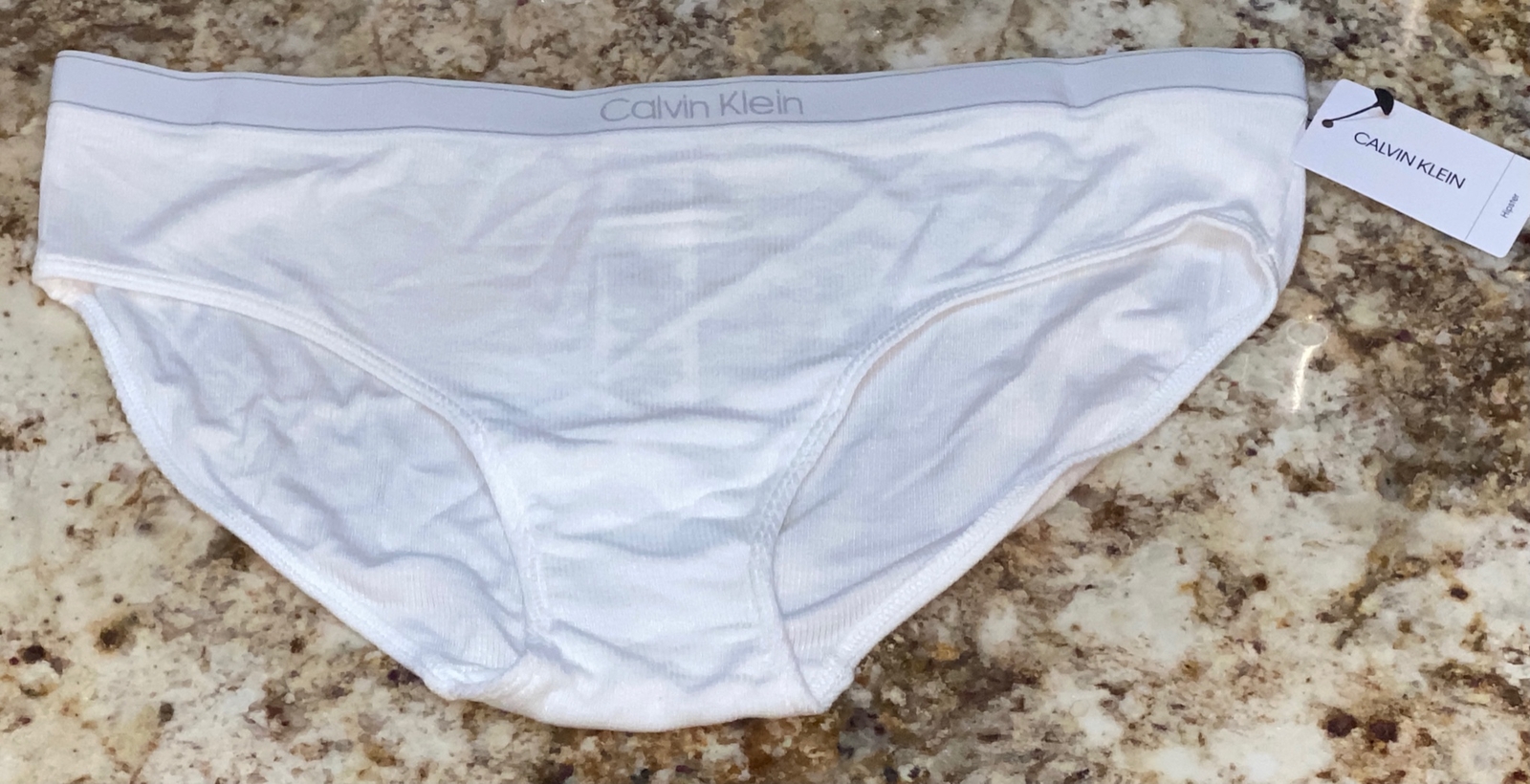 CALVIN KLEIN Pure Ribbed Soft Modal White Grey Hipster Panty Womens S 5 L 7 XL 8