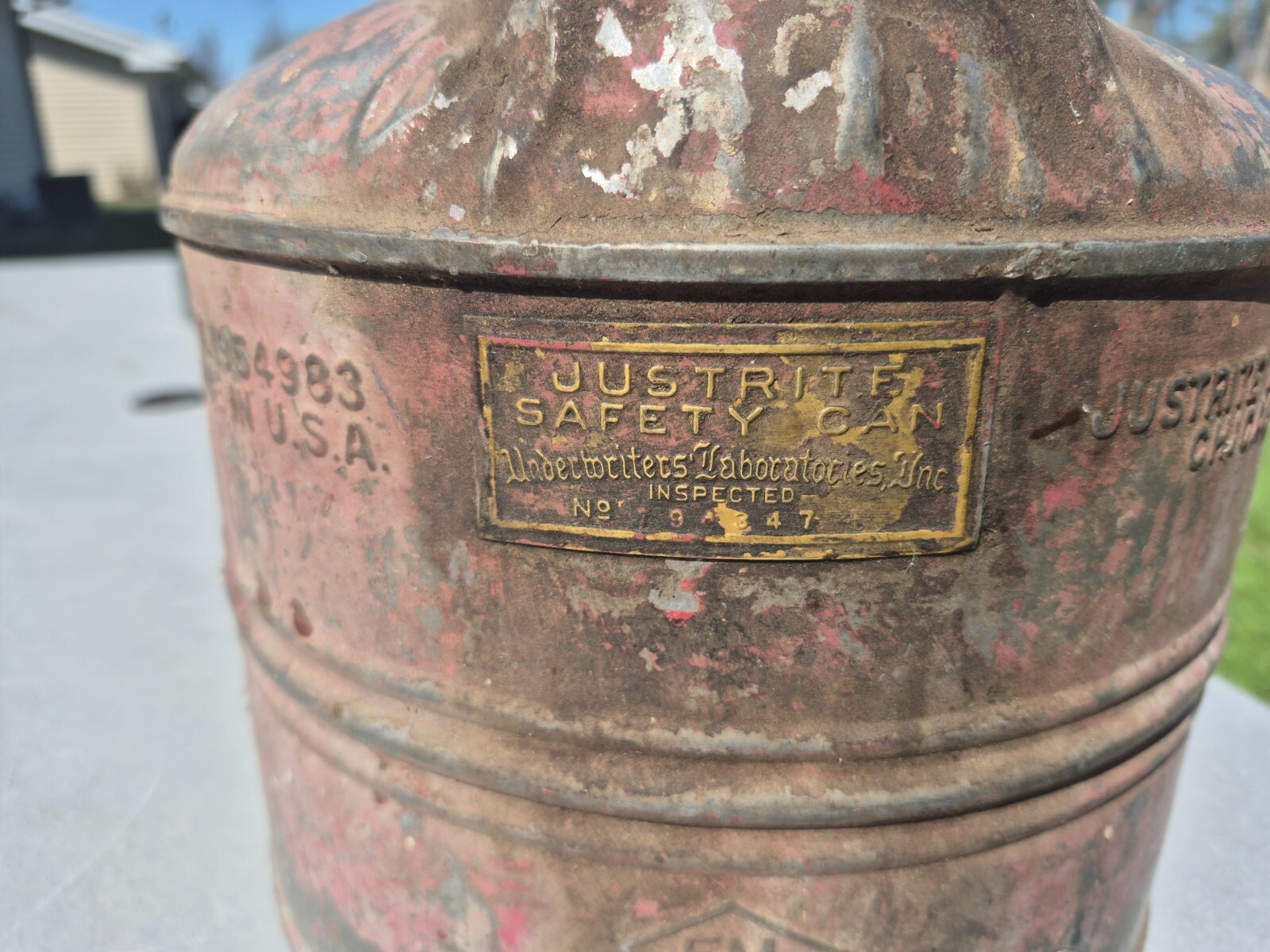 Vtg Justrite Safety Underwriters Laboratories 2 Gallon Can Auto Mechanic Decor
