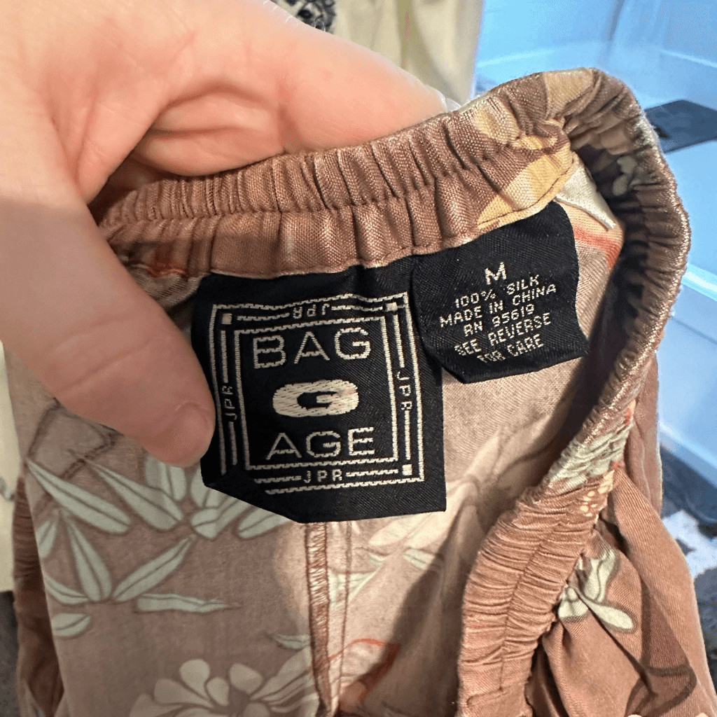 как выглядит Vintage Baggage Women s Medium 100 Silk Patterned Pants Trousers фото
