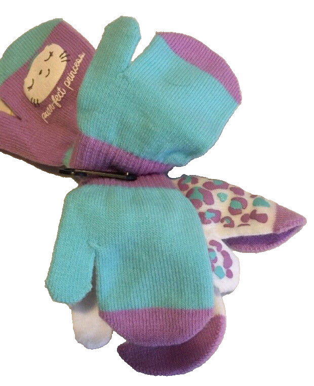 Toddler Girl Mittens 3 Pair Pack 2T-4T Grippers Mix Match Purple Teal Kitty