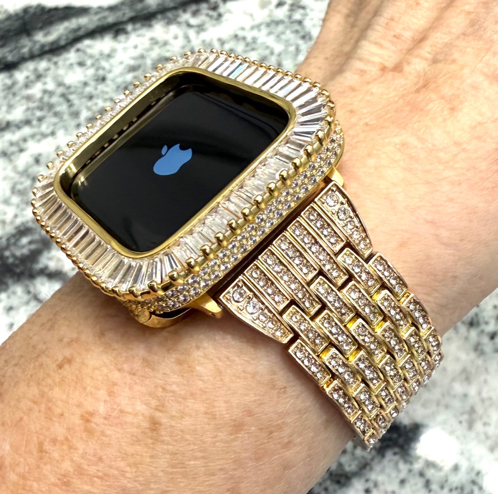 49 Ultra Apple Watch Yellow gold Lab Diamond Apple Watch case watch band