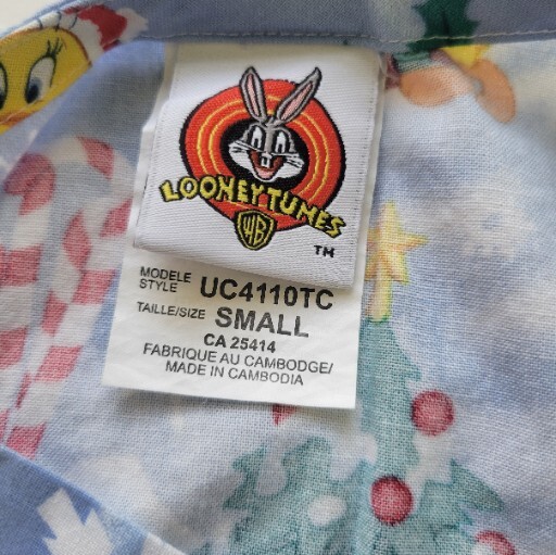 как выглядит Looney Tunes Christmas Small Scrub Top Shirt Uniform Women