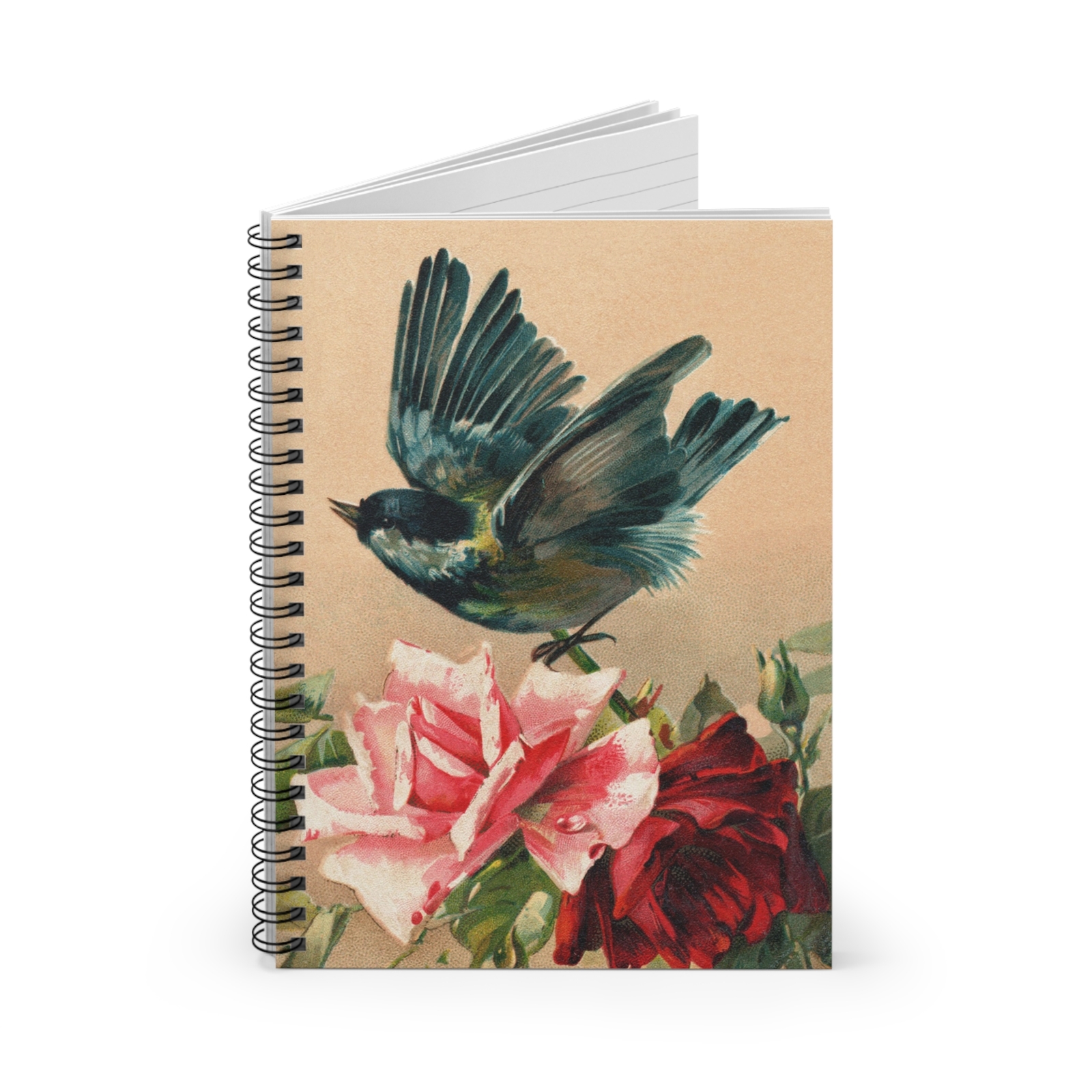 Bird With Roses By Klein Spiral Notebook - Ruled Line for Creative Minds