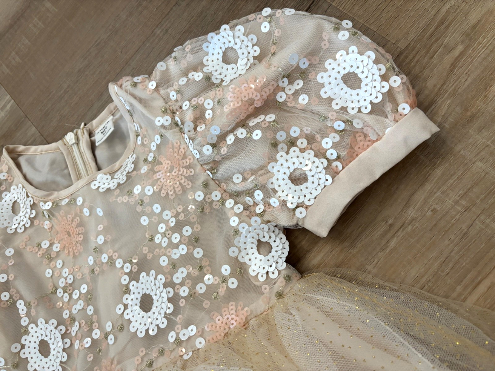 Princess Sequin Dress Toddler Girls 4Y Tulle Tutu Puff Cream Pink Fairy Party