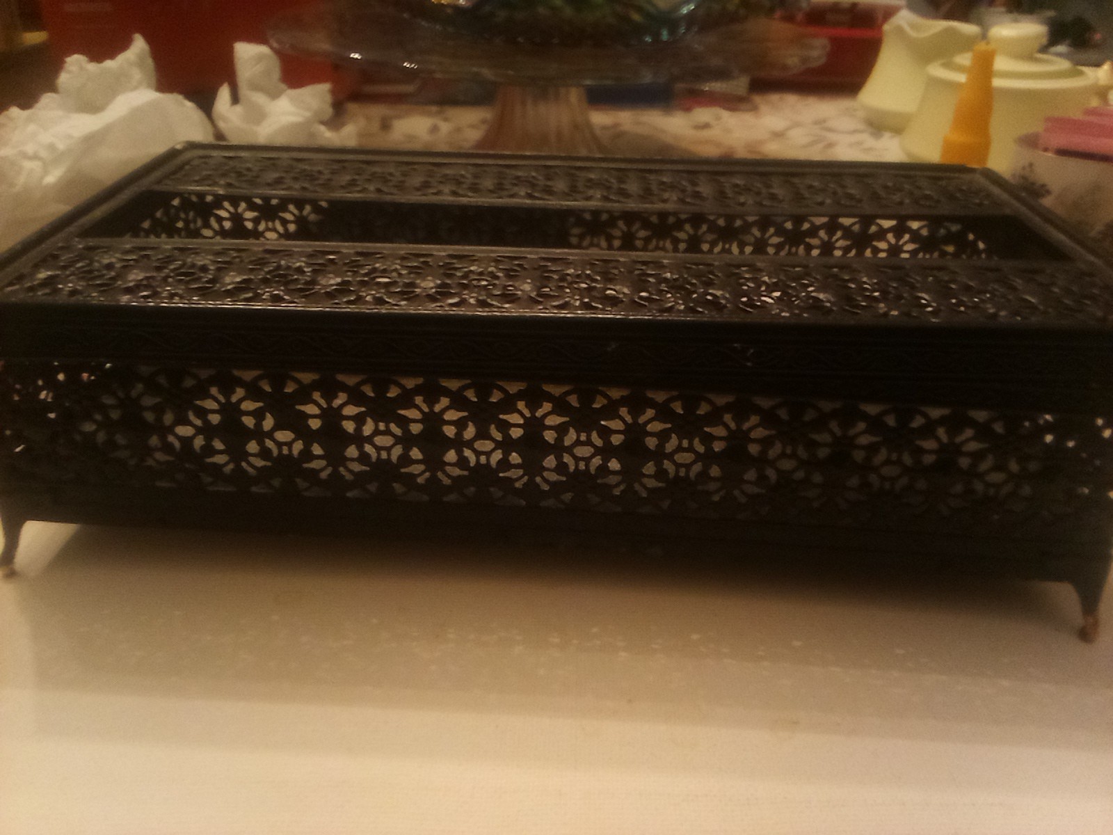 как выглядит Vintage Black Filigree Tissue Box Holder Hollywood Regency Style Ornate Kleenex фото