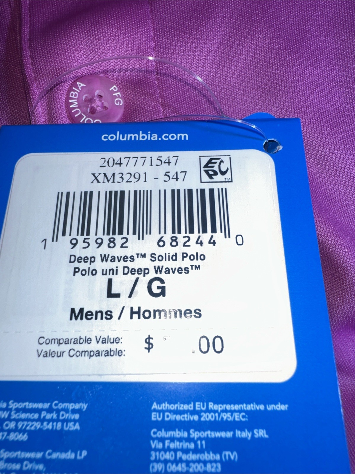NEW Men's Columbia PFG Deep Waves Purple Polo Shirt Size Large MSRP 50