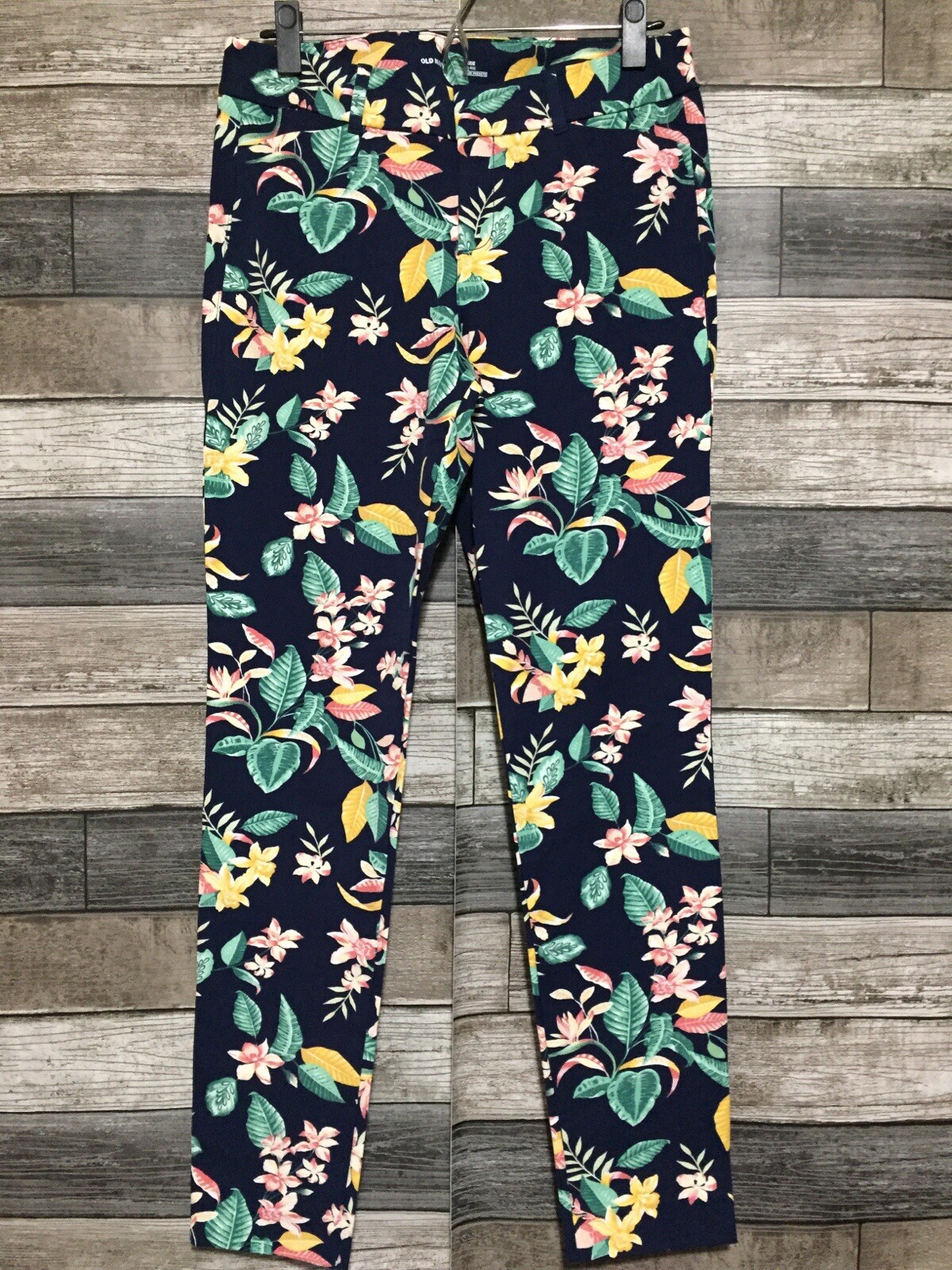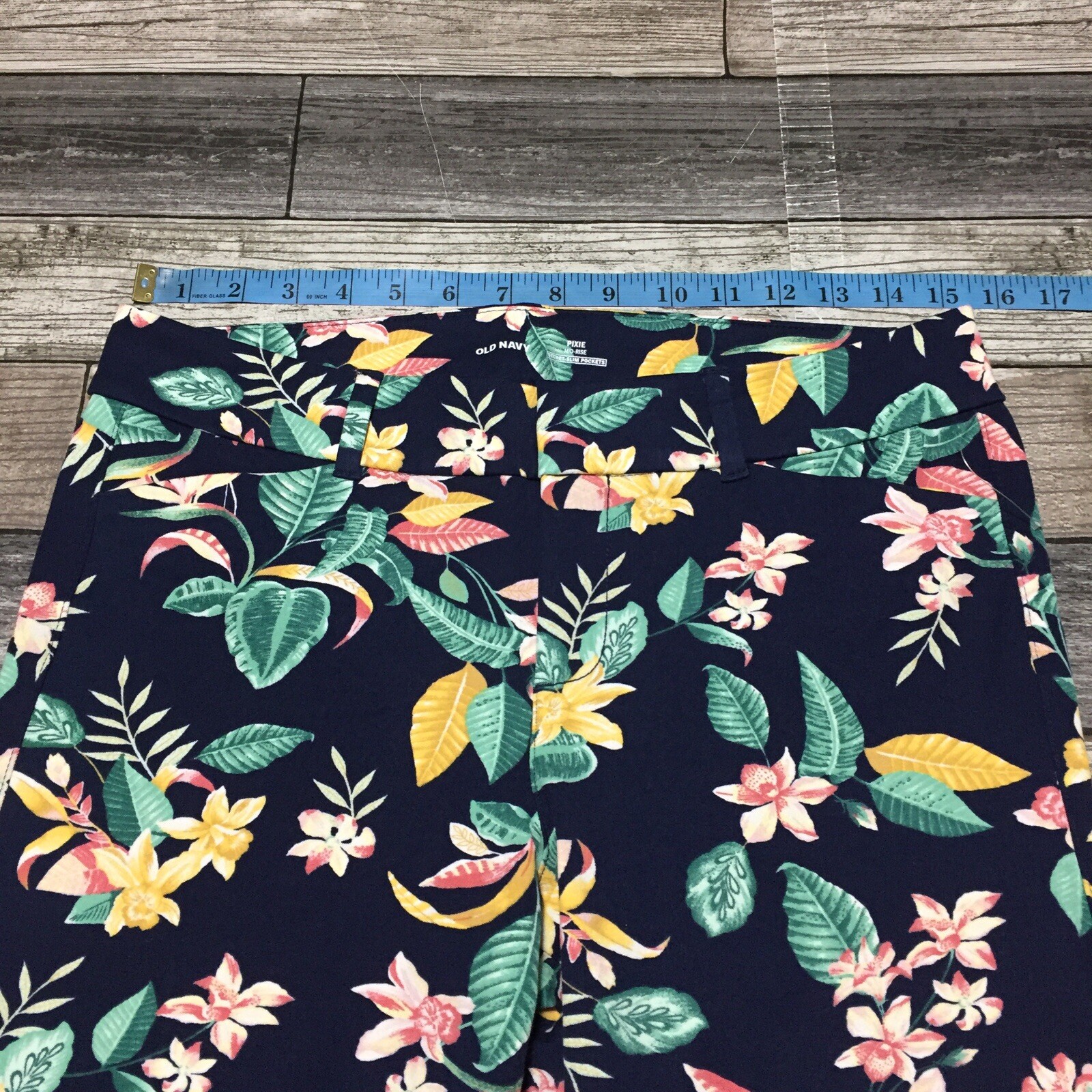 как выглядит Old Navy Pixie Floral Pants Women s 6 Navy Blue Mid Rise Stretch Inseam 29 фото