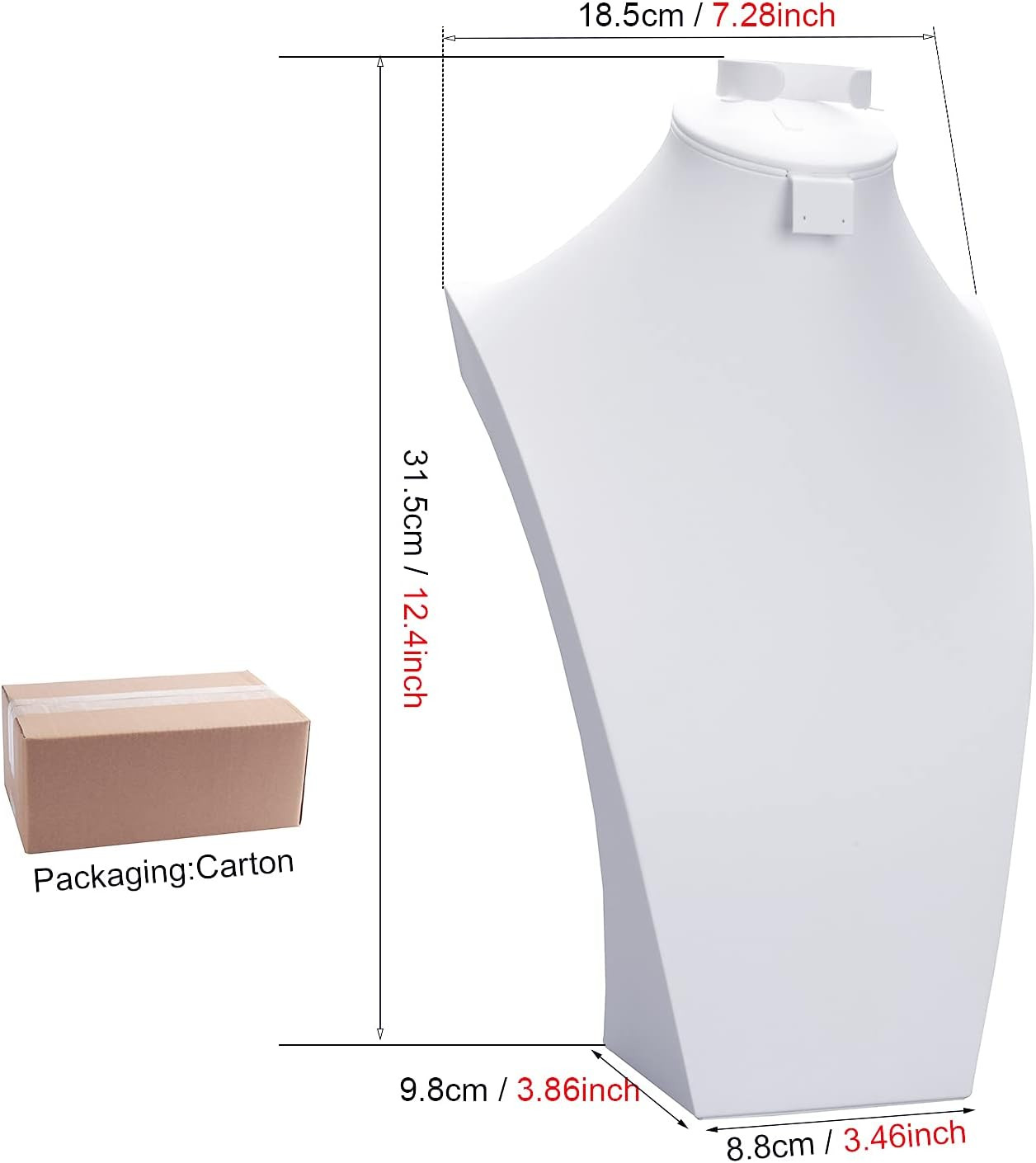 White Leather Bust Display Stand for Necklaces, Large Jewelry Bust Display Organ