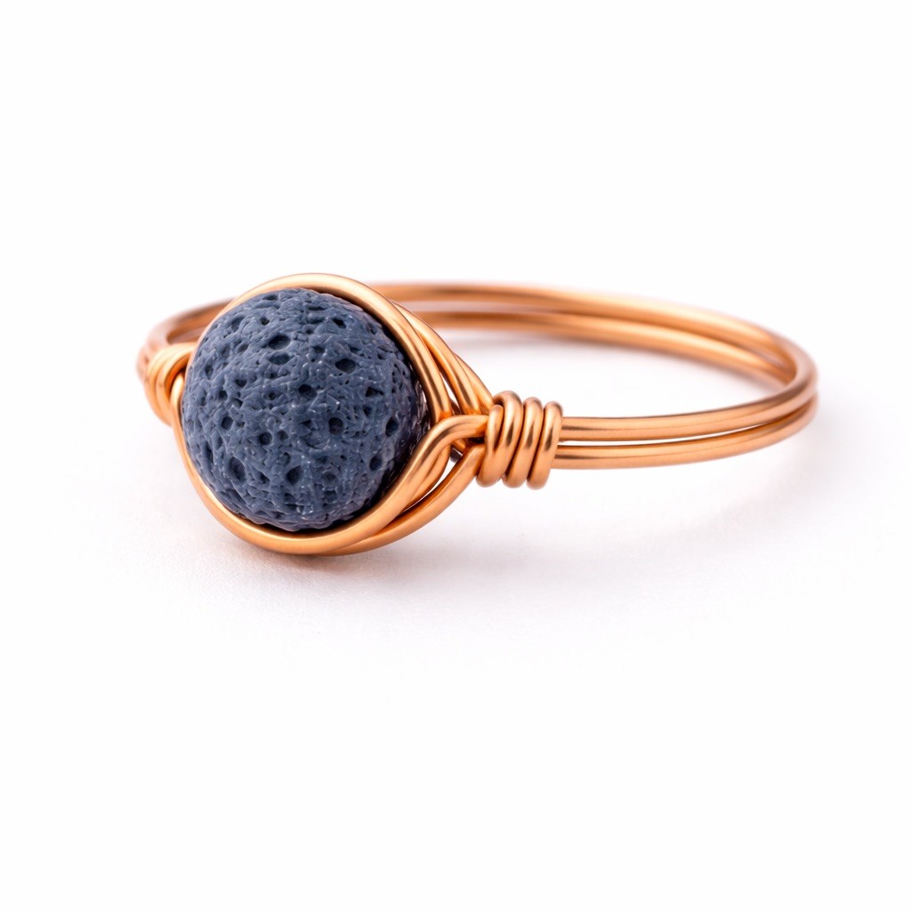 Copper Blue Lava Rock Handmade Ring 1007