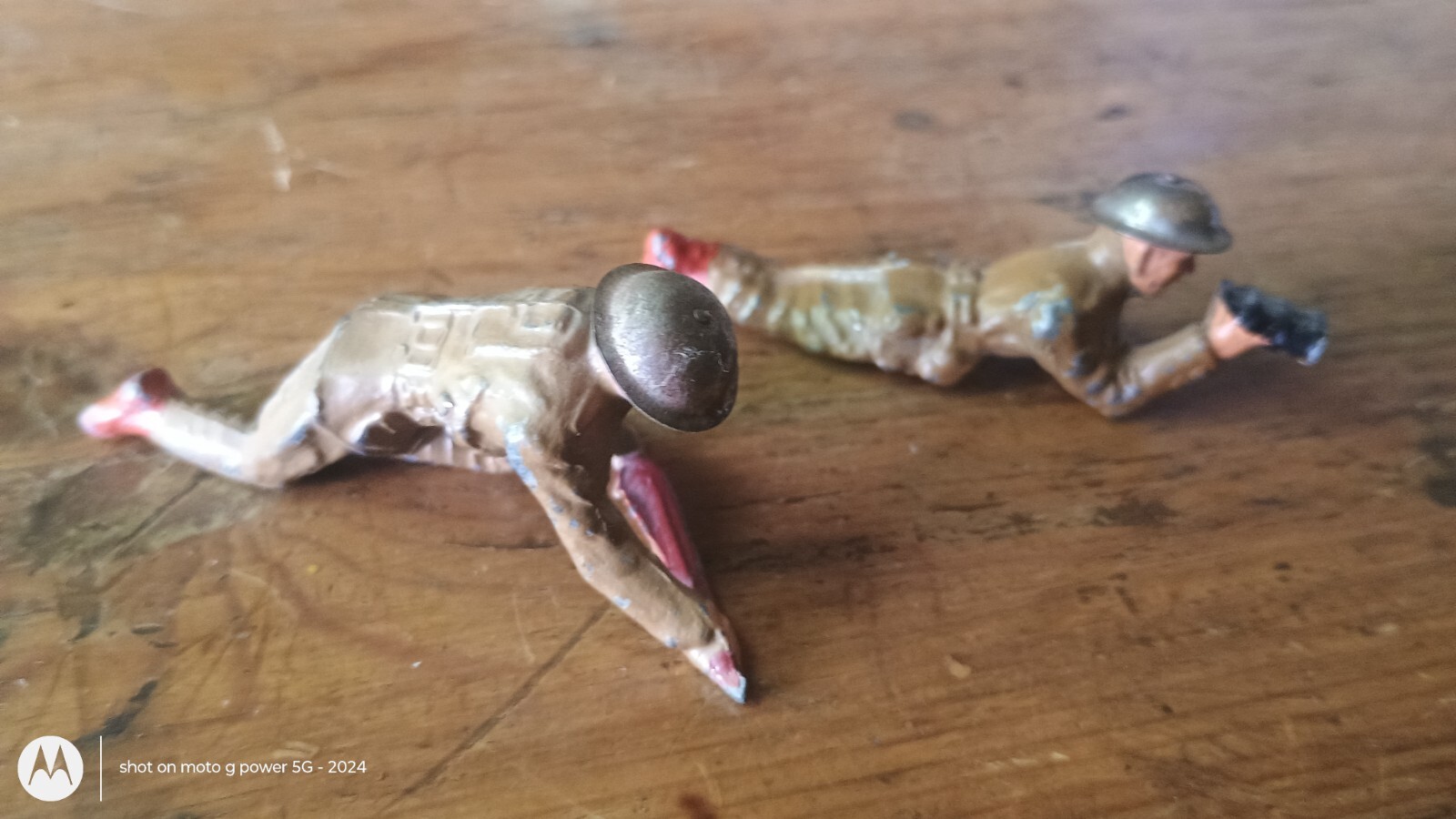 Vintage WW1 WWI Era Cast Lead Metal Toy British/US Soldiers 2 pieces .