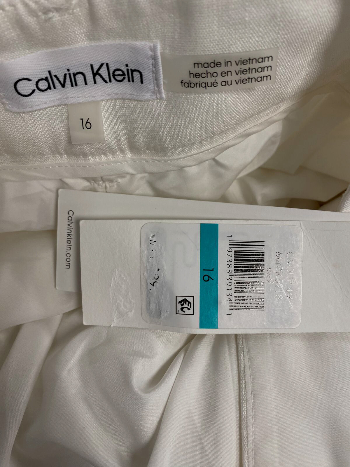 как выглядит Calvin Klein Womens White Linen Blend Pleated Wide-Leg Pants Size 16 фото