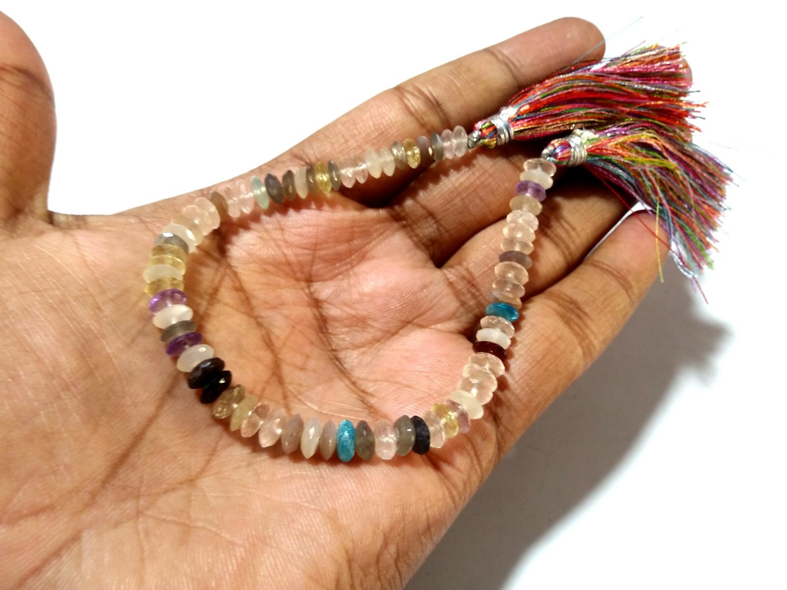 58Ct/70Pc Natural Multi Stone Rondelle 6-7mm Faceted Gemstone Beads 7.5Inch