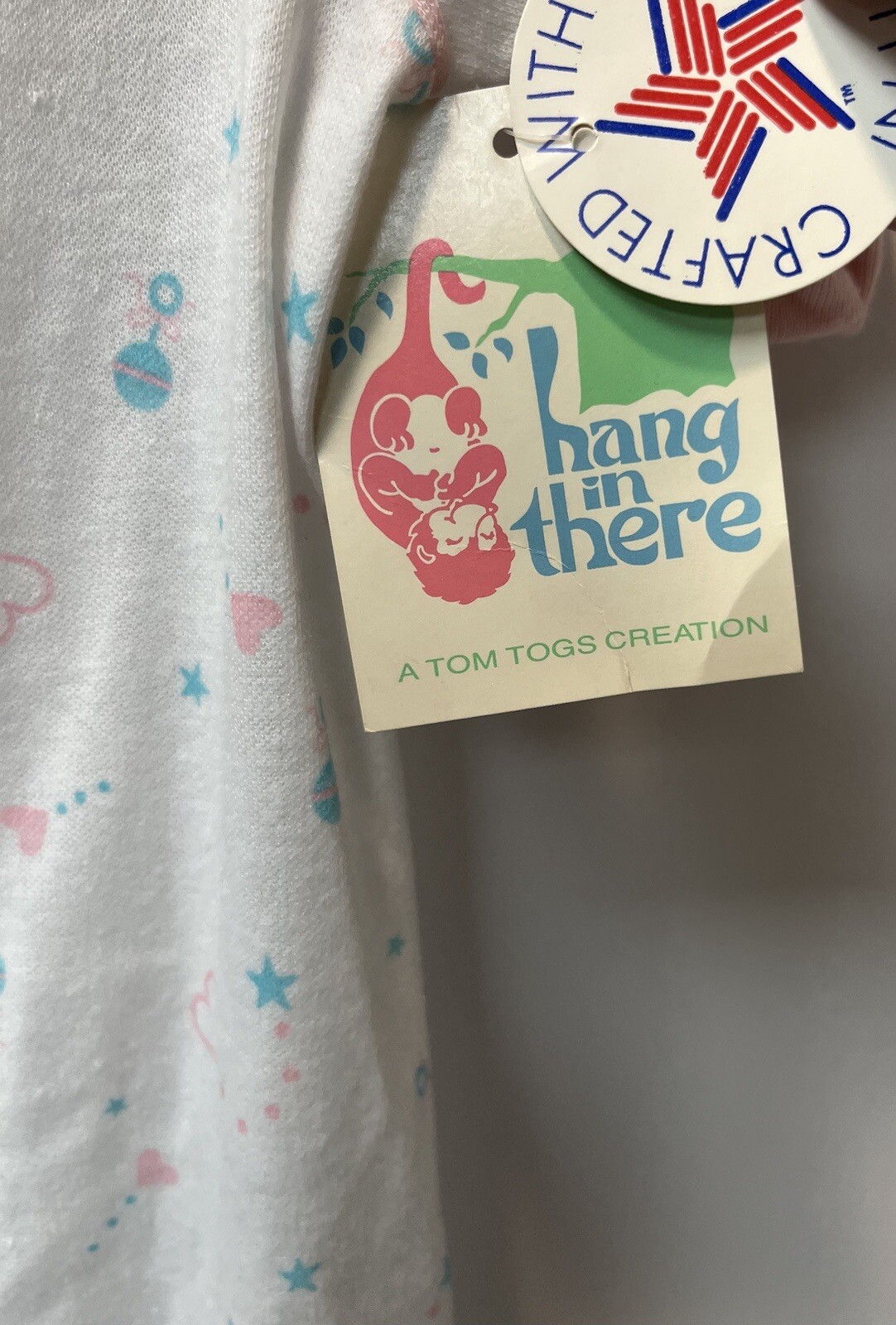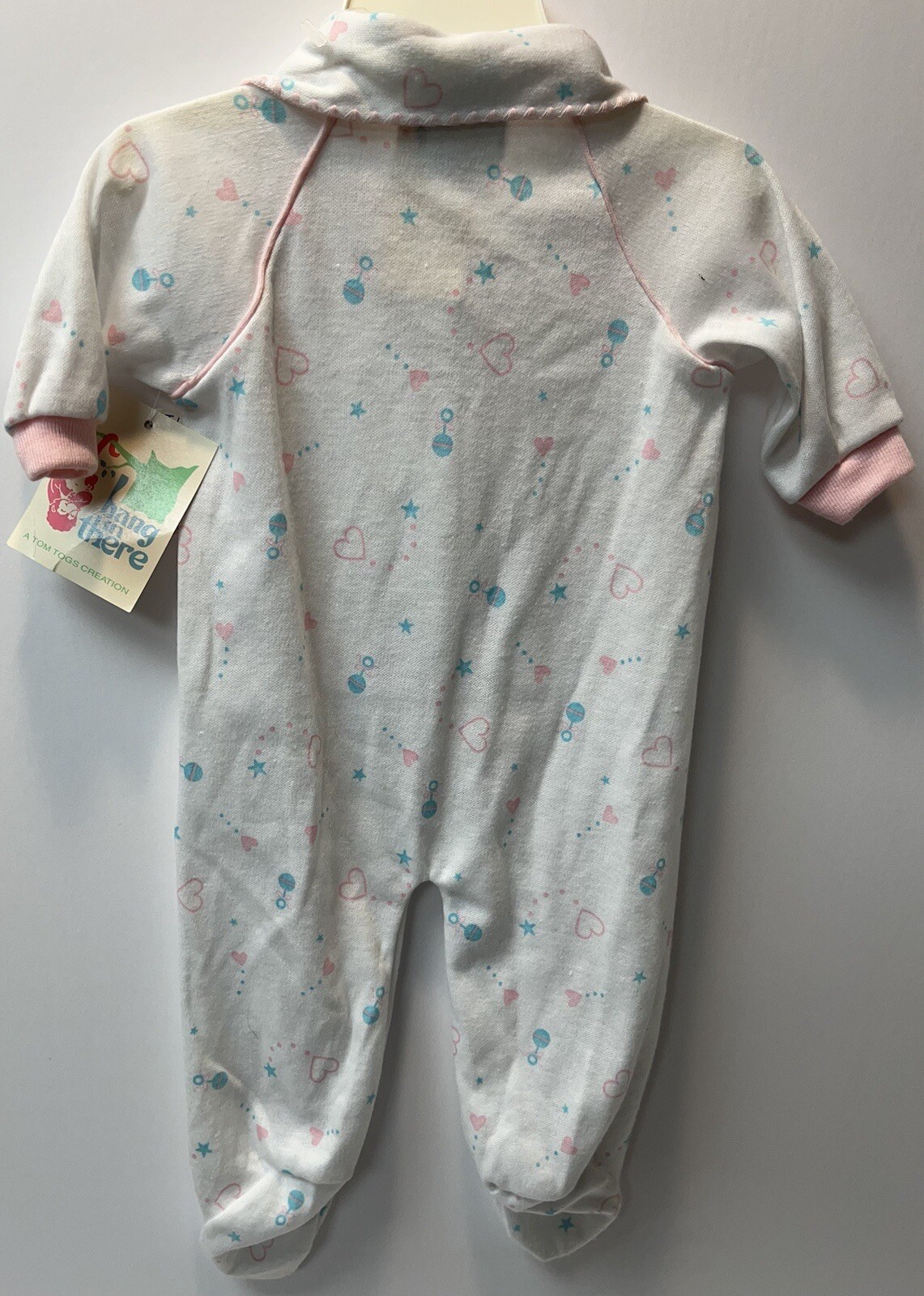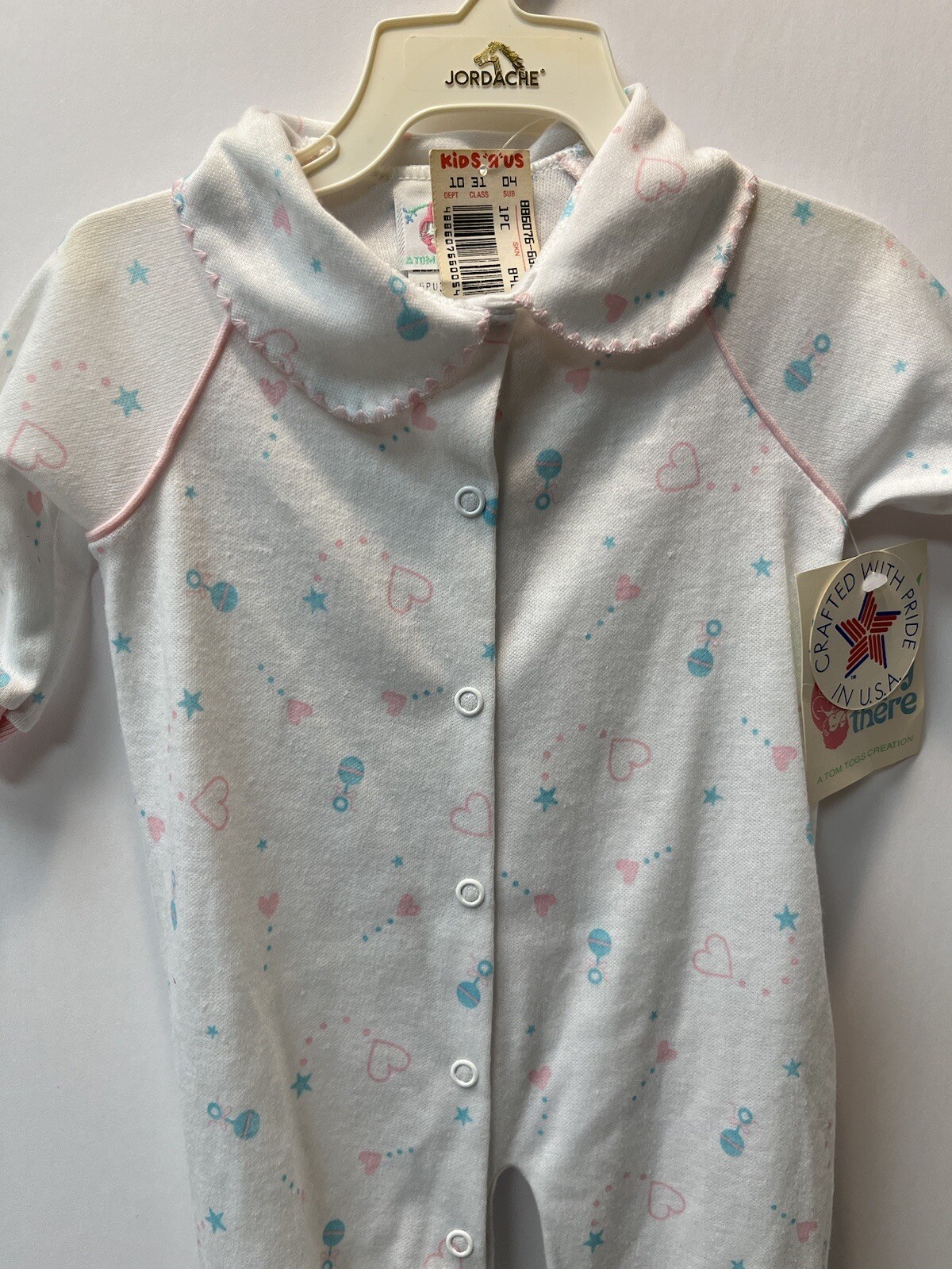 NWT Vtg 3 Months Baby Unisex Girl Boy 80s Pastel Hearts Stars Thin Pajamas USA