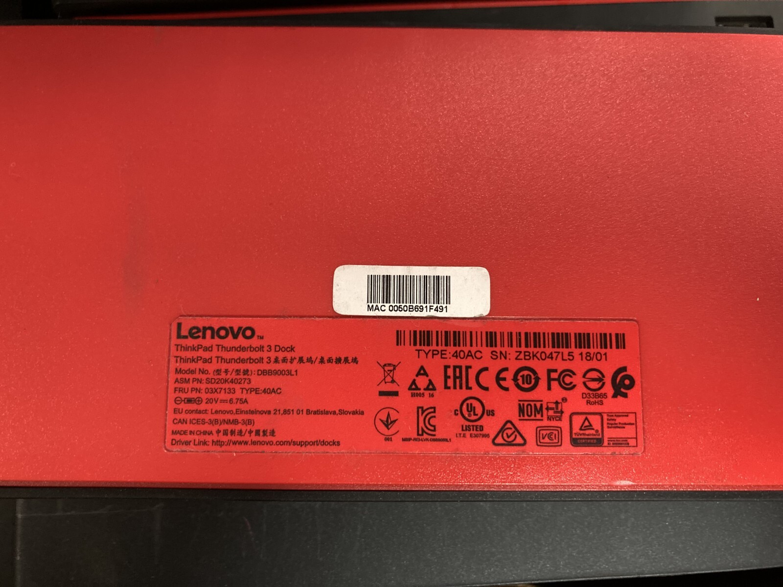 Модель: Lenovo ThinkPad Thunderbolt 3 Dock