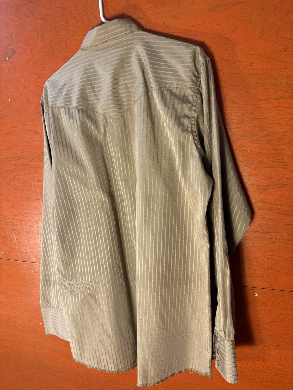 как выглядит Wrangler cowboy dress shirt Beige LrgTall Western Snap, Shiny Gold Pin Stripes. фото