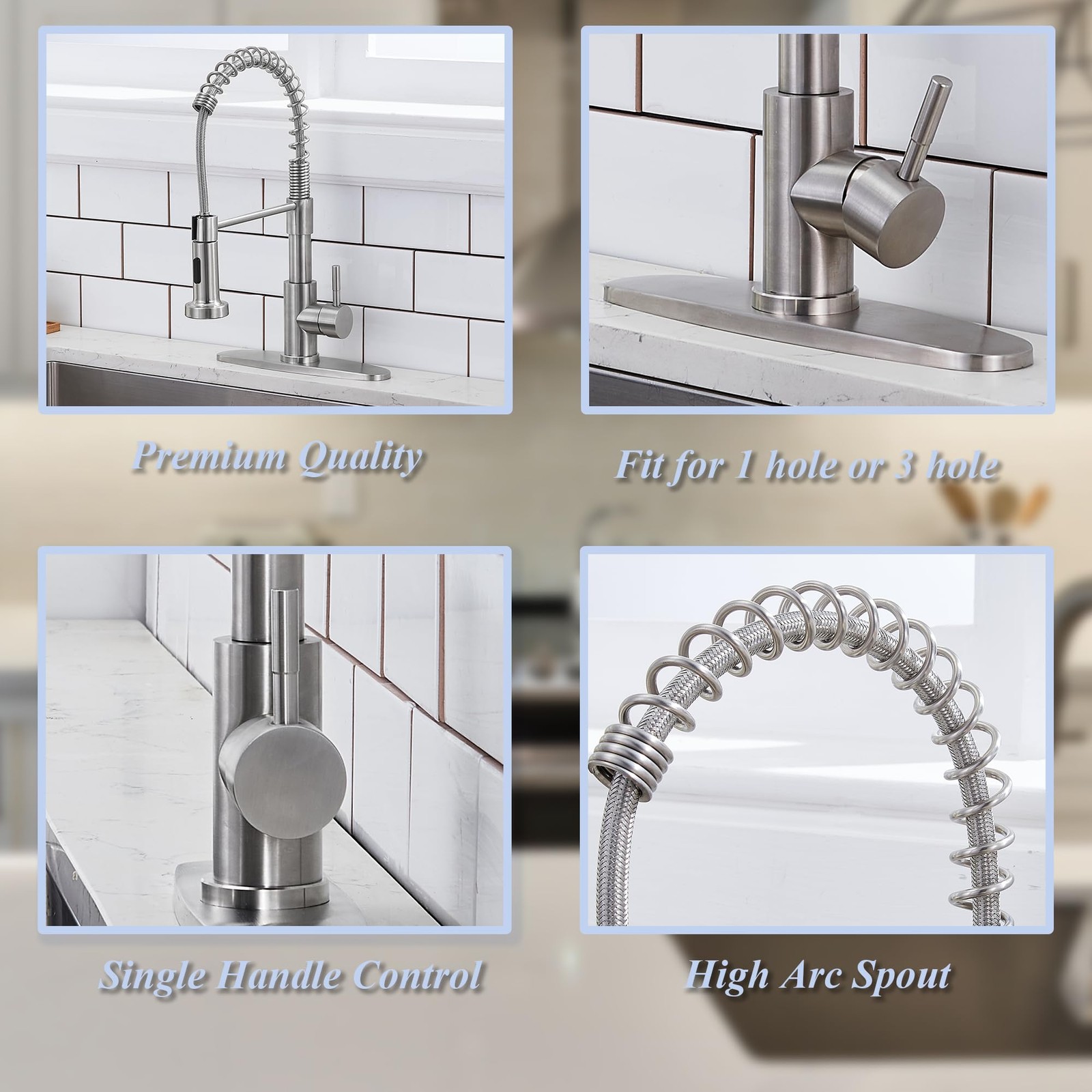 Kitchen Faucet with Pull Down Sprayer, Brushed Nickel Stainless Steel Faucet ...