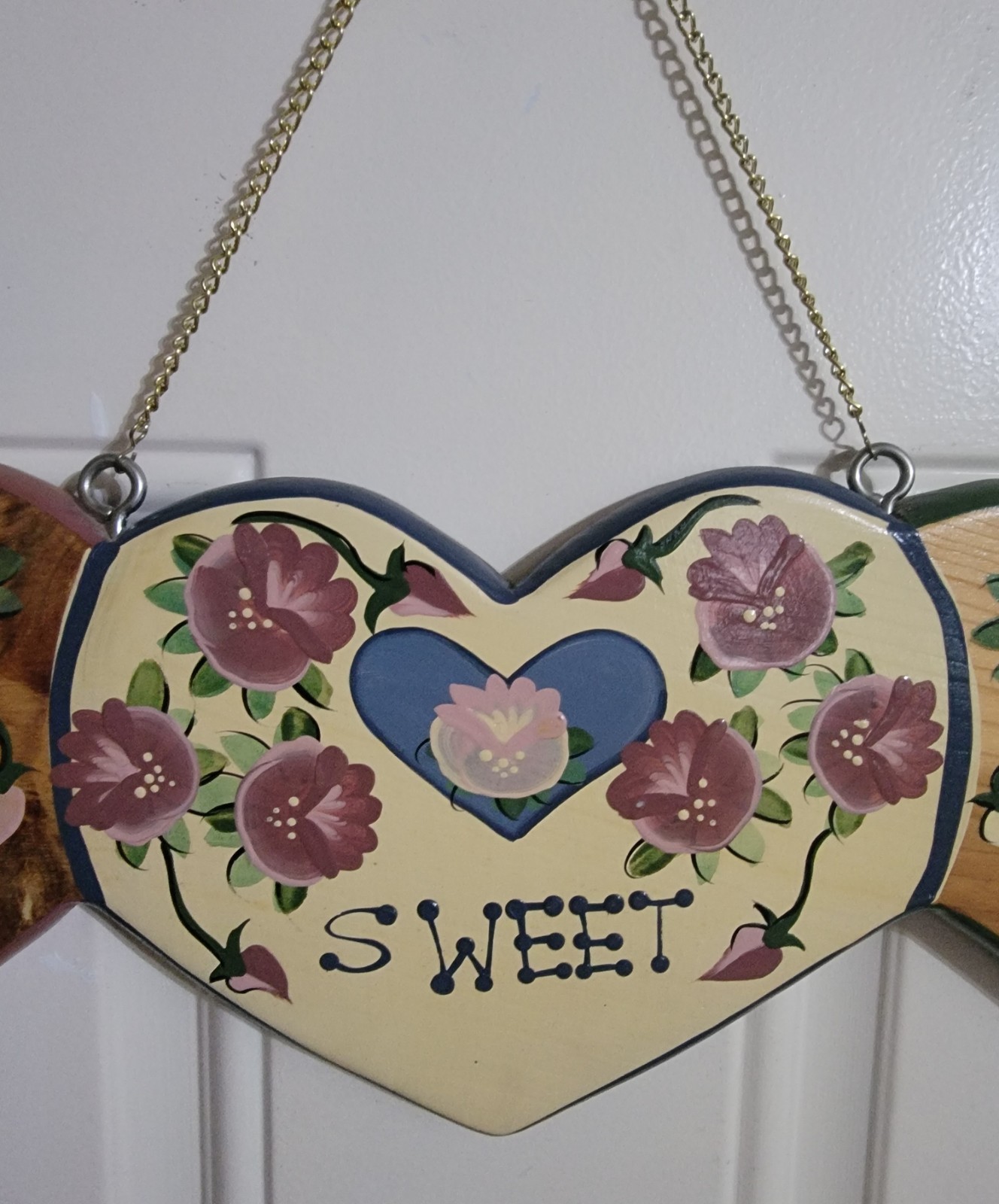 Handmade Handpainted In Mexico Home Sweet Home Wood Heart Floral Hanging Decor
