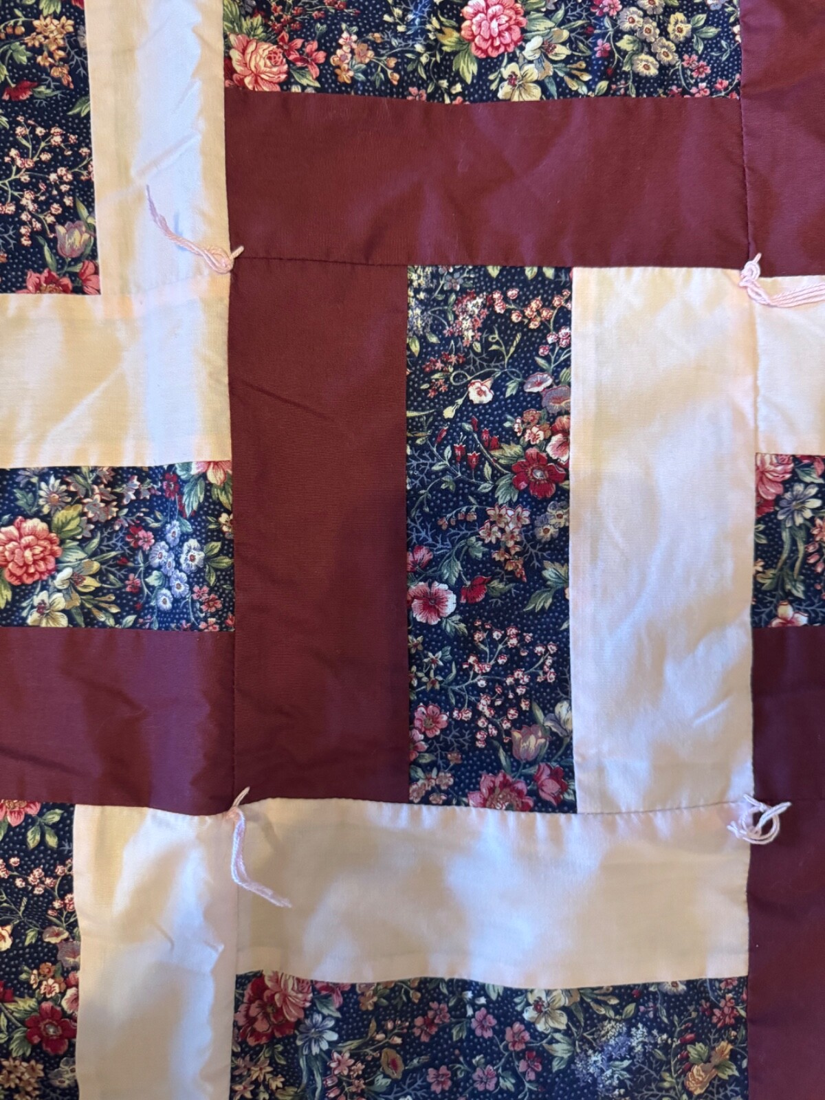 • Finished Hand Stitched Quilt Multicolor Burgundy 48 x40