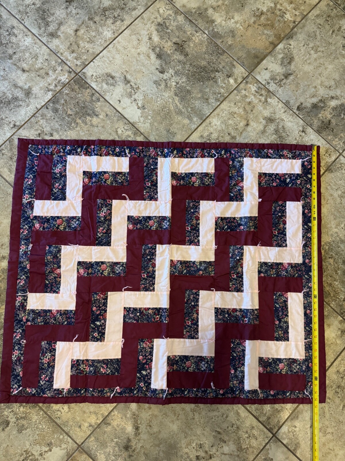 как выглядит Finished Hand Stitched Quilt Multicolor Burgundy 48 x40 фото