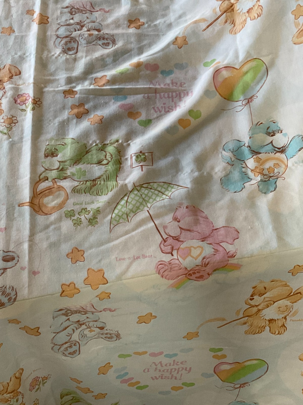 как выглядит Vintage Care Bears Fitted Cotton Blend Twin Sheet Made in the USA-Birthday Bear фото