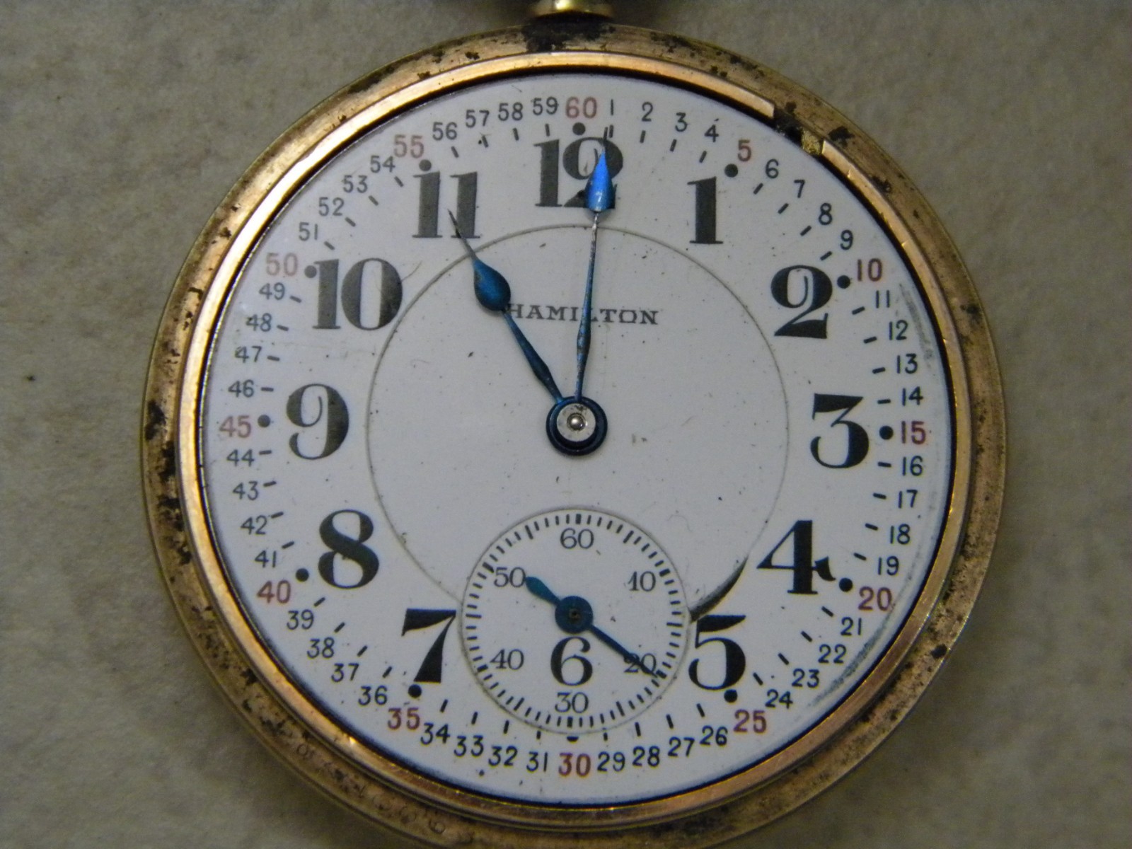 как выглядит Hamilton- 10K Gold Filled- 1696347- Ruby Sapphire- 1923- Openface- Pocket Watch фото