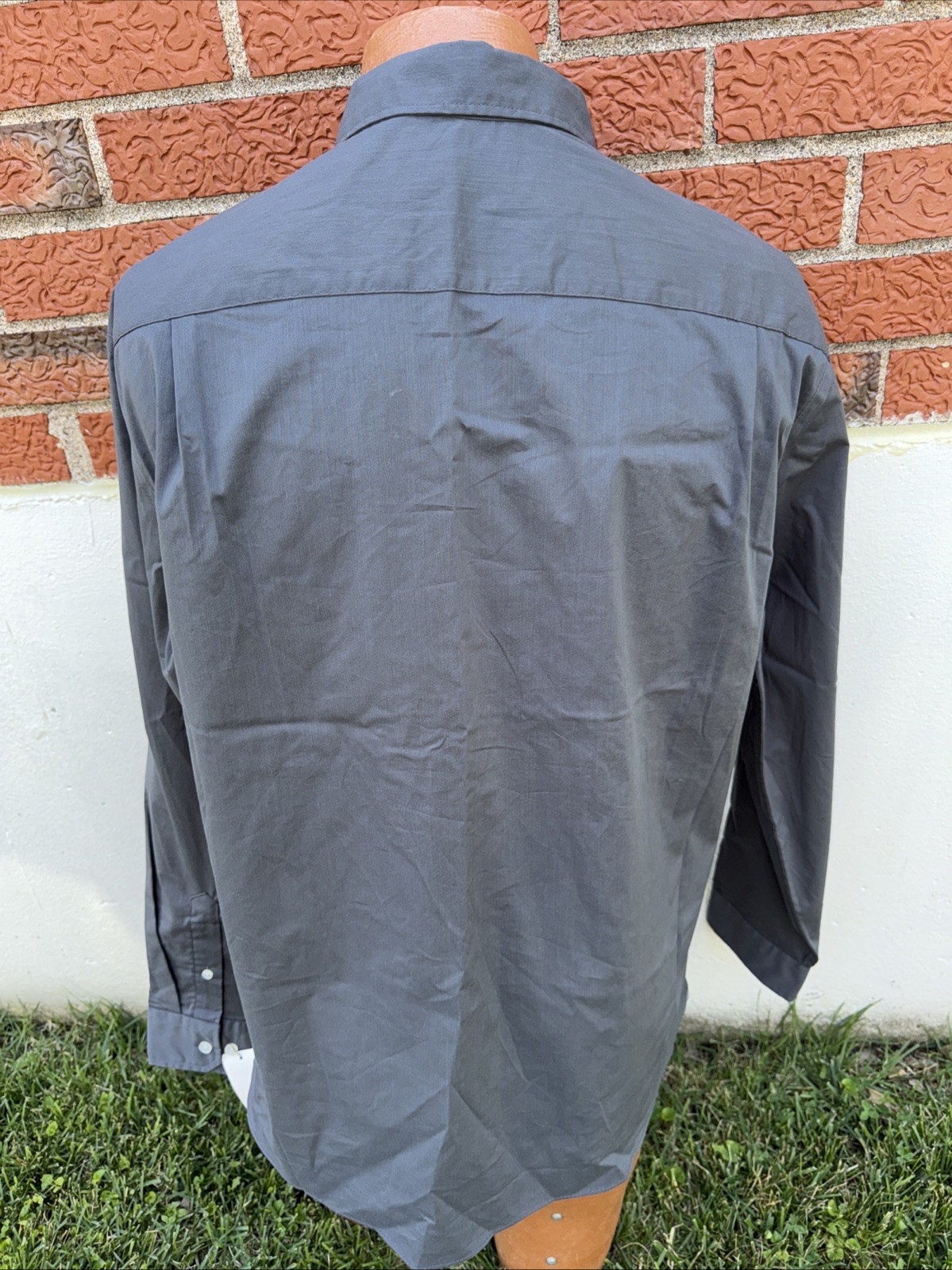 как выглядит Van Heusen Mens Slim Fit GREY Long Sleeve Dress Work Casual Shirt Size LG NEW фото