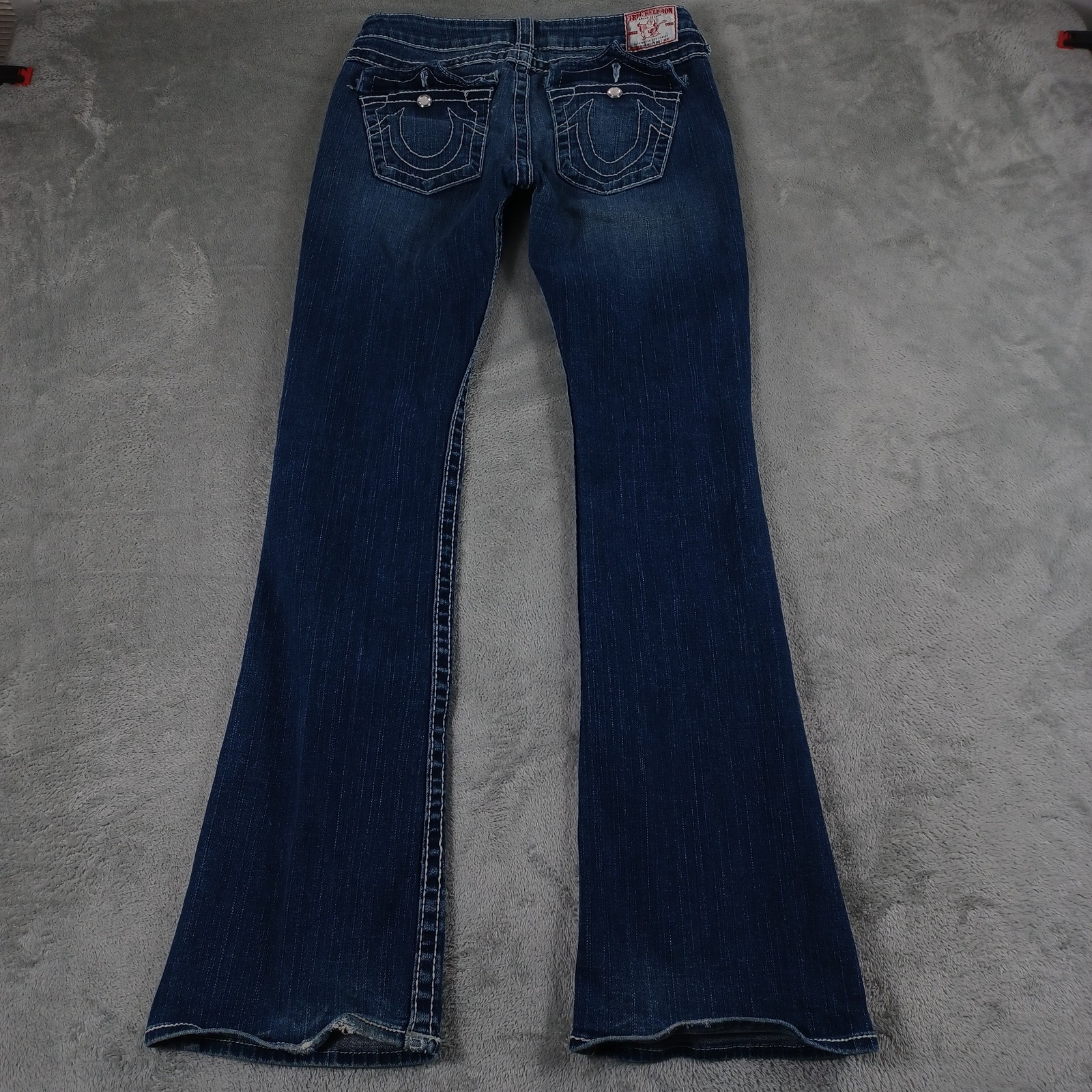 как выглядит True Religion Jeans Womens 29 Blue Distressed Flare Made USA Embroidered Pockets фото
