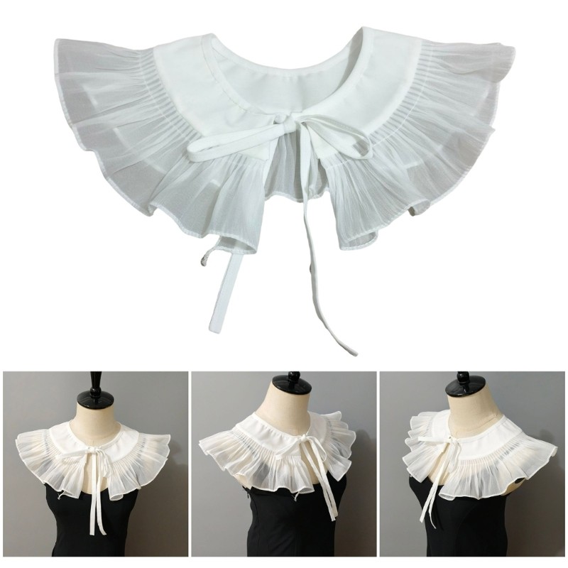 Fashionable Lace Collar Ruffle Faux Collar Decorative Half Shawl for Office Lady