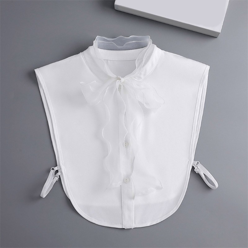 как выглядит Chiffon Ruffle False Stand Collar Detachable Collar for Sweater Retro Half Shirt фото